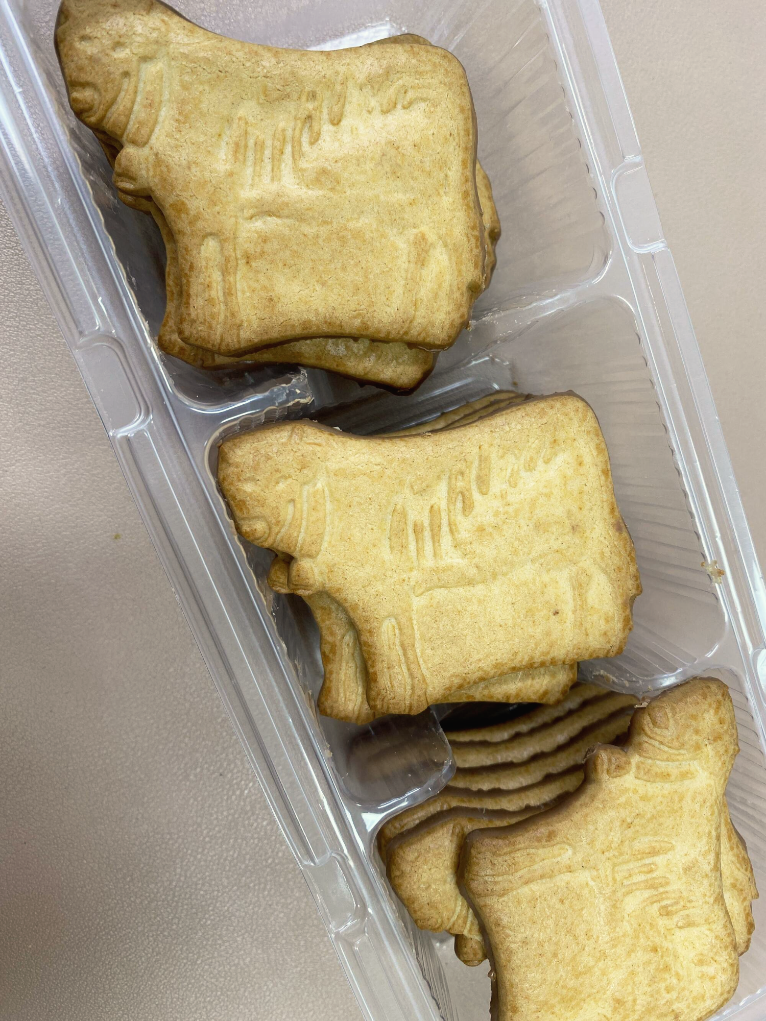 포장지에 박힌 사진을 보니 소 모양 비스킷 같은데 소 그림이 약간 고대 수메르인이 새겨 놨을 법한 그림체다.