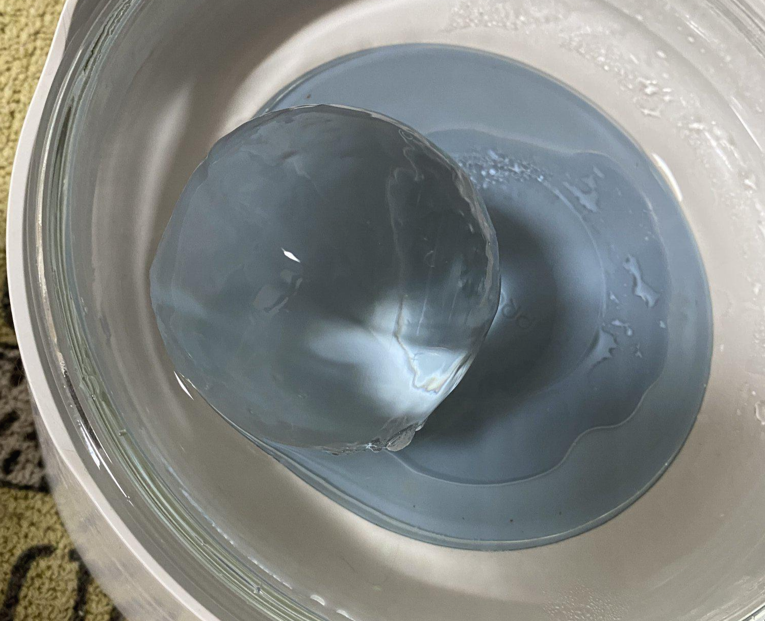 크기는 일반 얼음컵에 꽉 차는 얼음 하나. 애들 주먹만 하다. 꺼내 놓고 잠깐 딴짓해서 그사이에 살짝 녹았다.