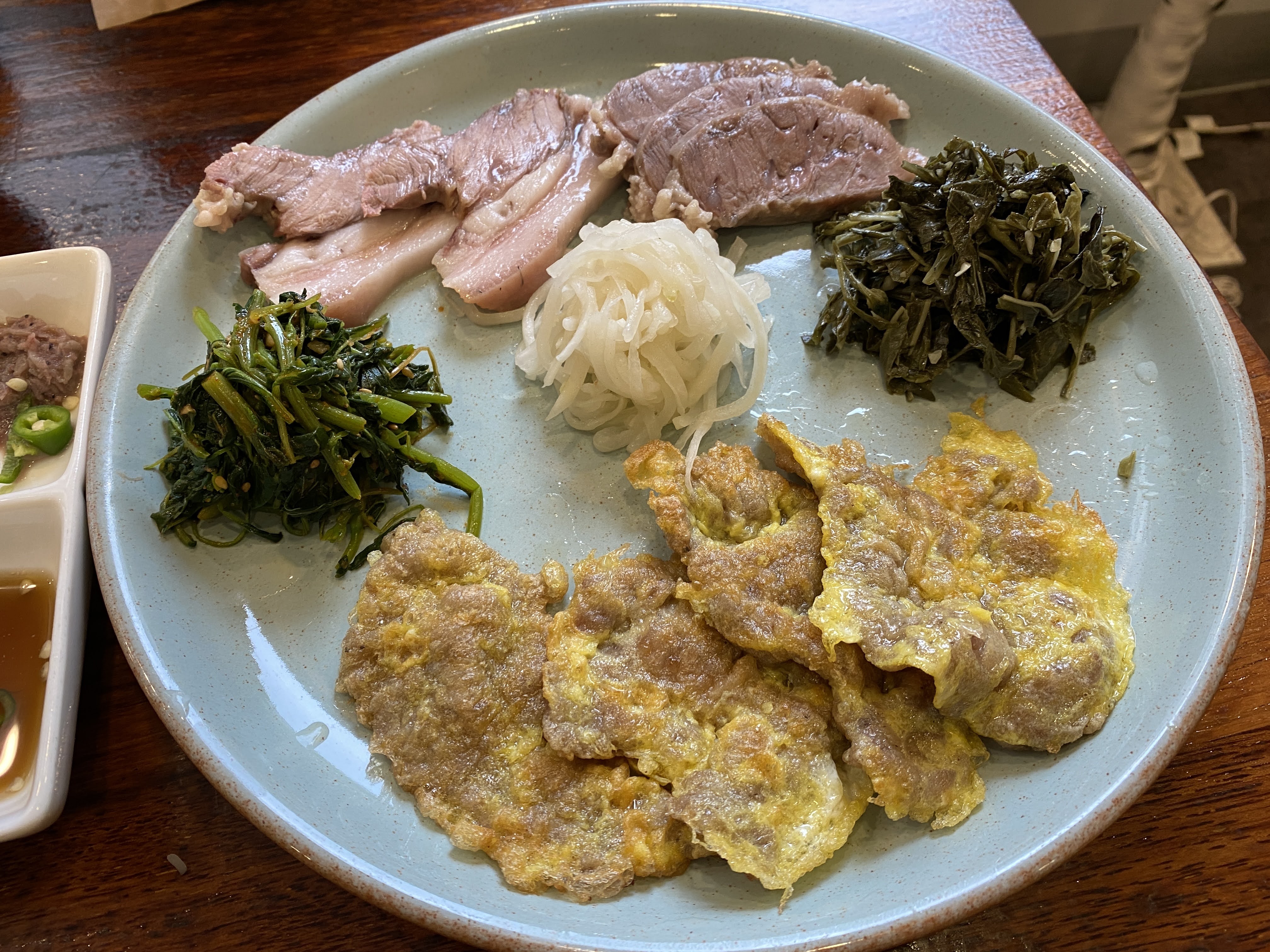 수육이랑 나물, 육전이 나왔다. 나온 거 보고 이 정도면 괜찮은데 싶었다.