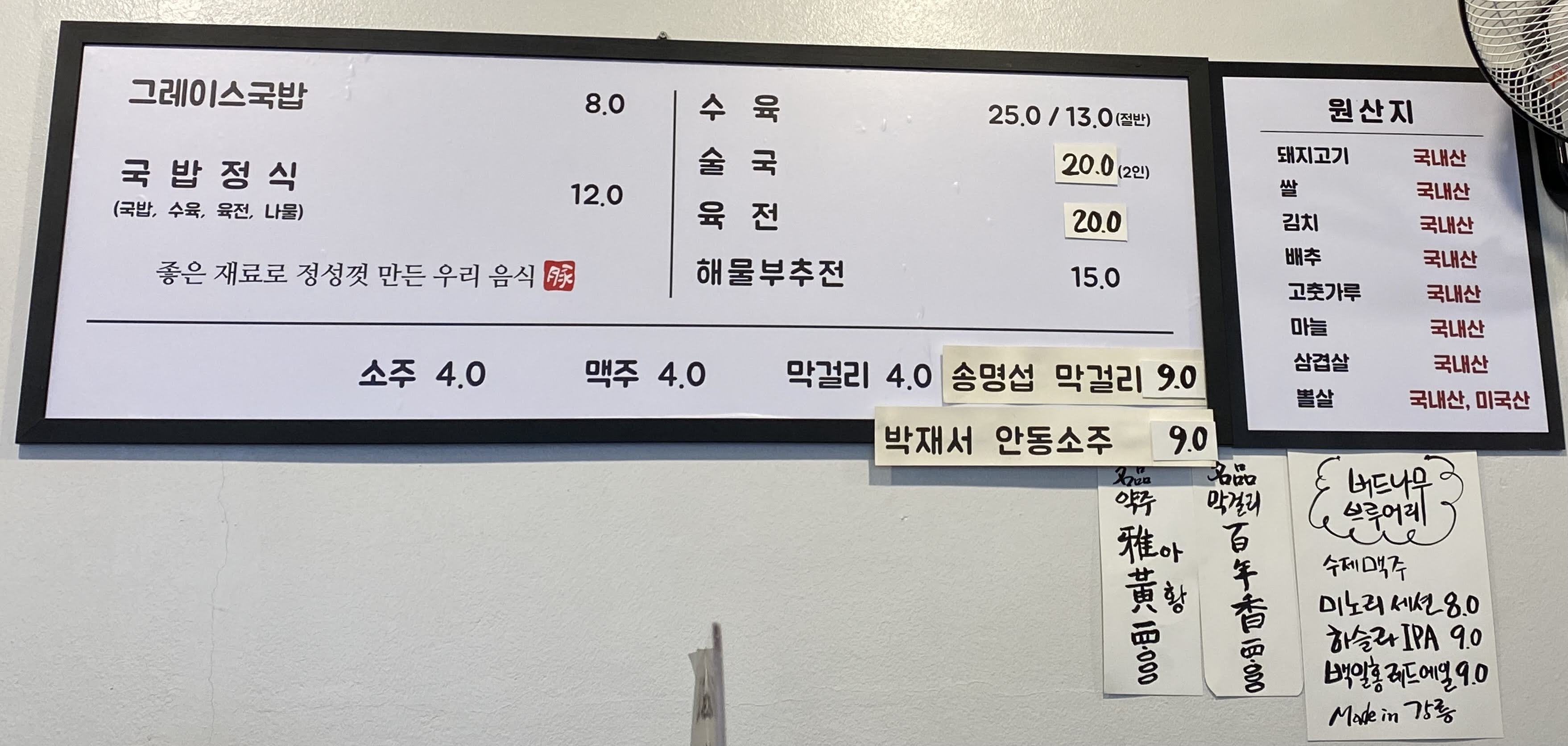 새로운 가게를 가려던 의지를 이어 한번도 안 가 본 가게를 가기로 했다! 그래서 가게 된 곳이 그레이스 국밥.