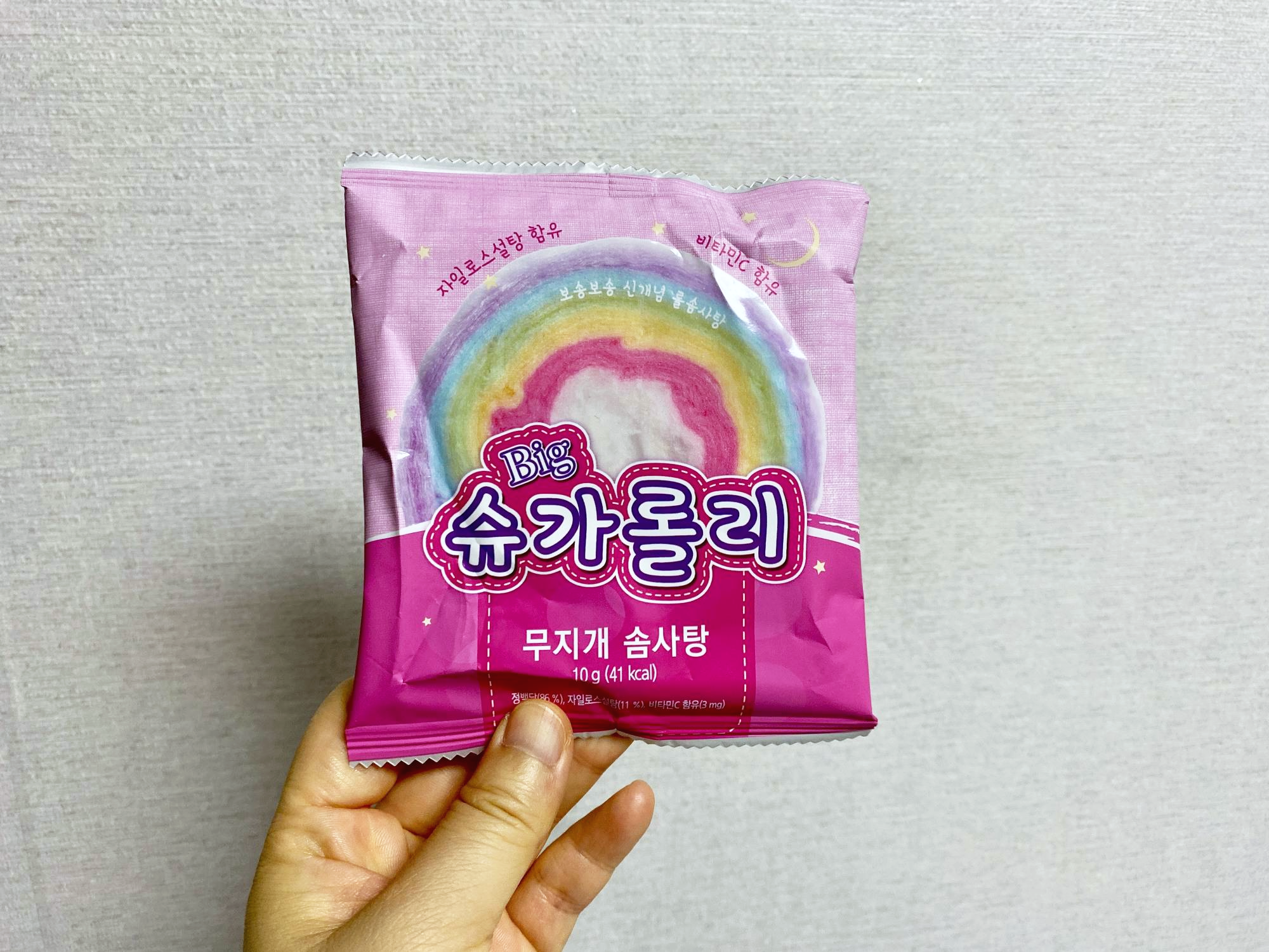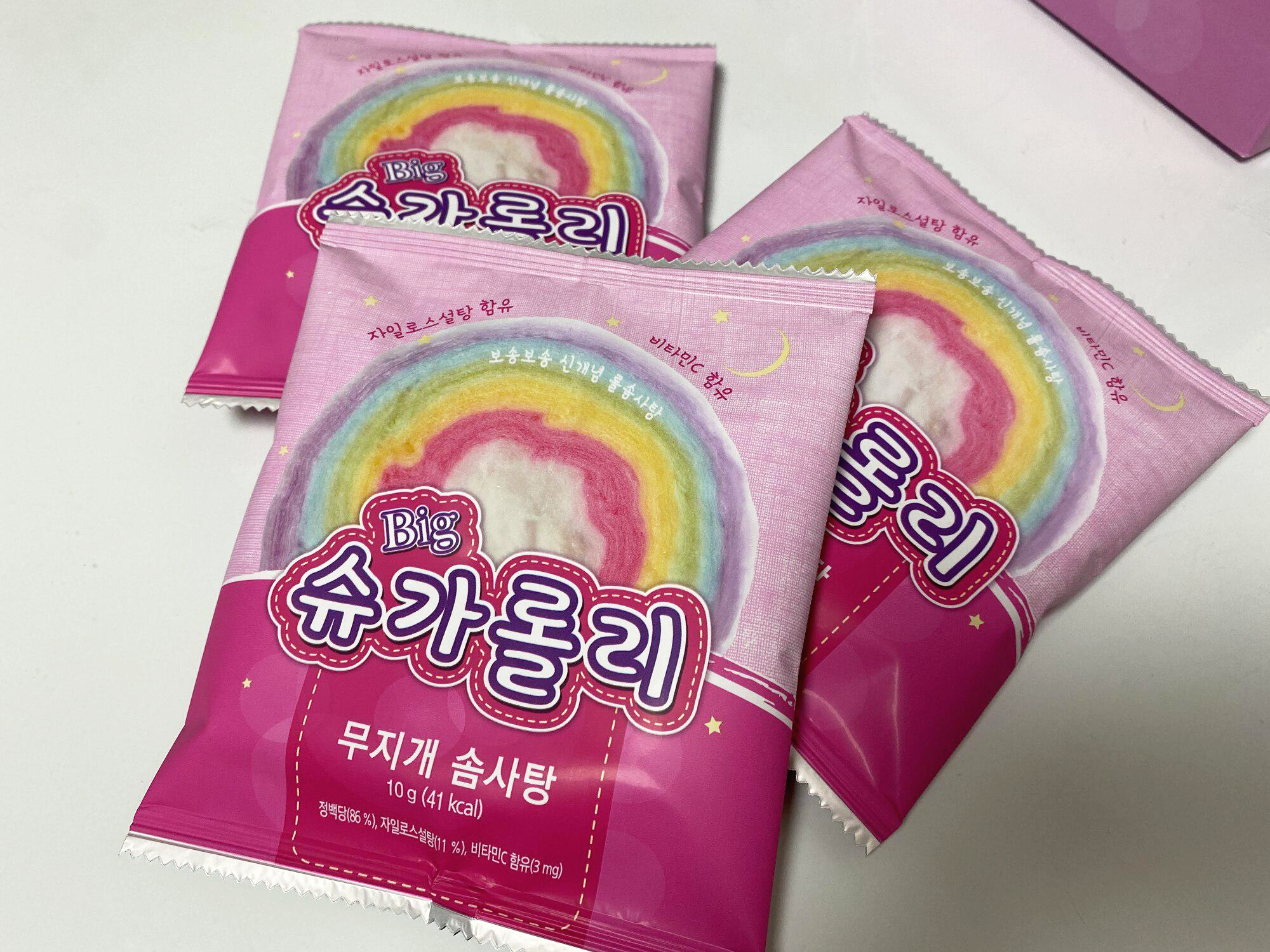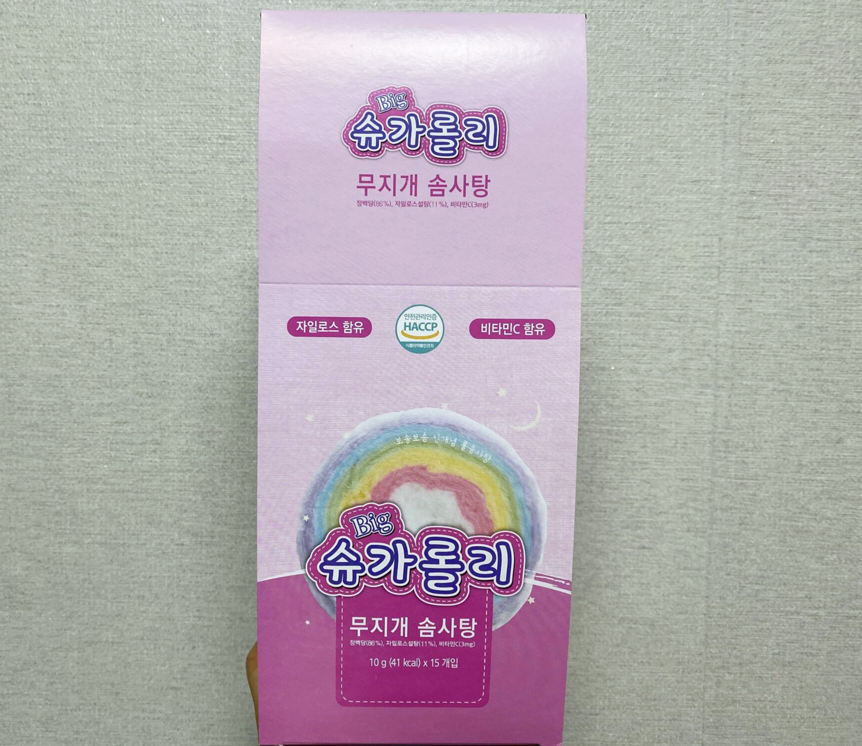 드디어 친구 아들분이 주었던 솜사탕을 샀다! 이름은 빅 슈가롤리 무지개 솜사탕이었다.