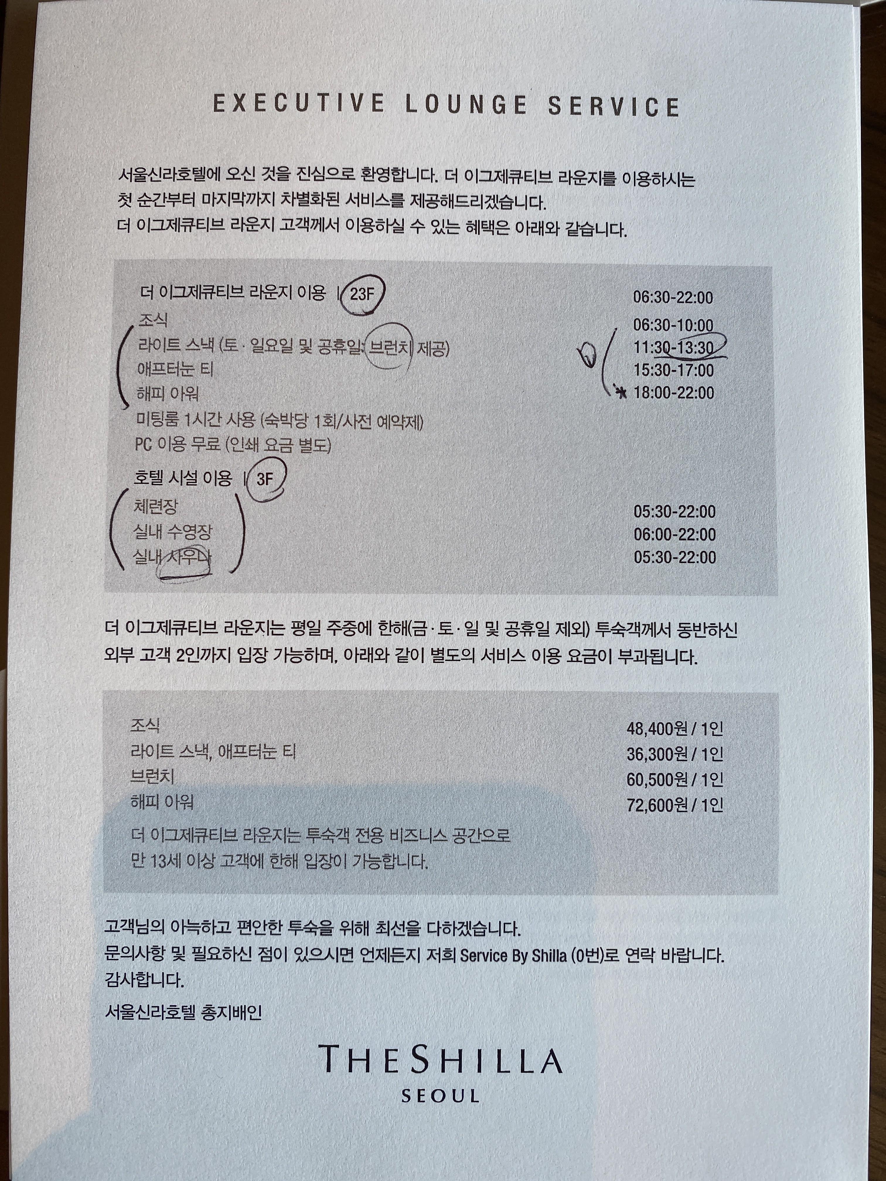 신라호텔은 금요일 체크인, 토요일 체크아웃! 원래 신라호텔에서 이틀을 다 묵고 싶었는데 토요일 숙박이 이그제큐티브가 되는 룸이 없어서 그냥 1박만 하기로 결정했다.