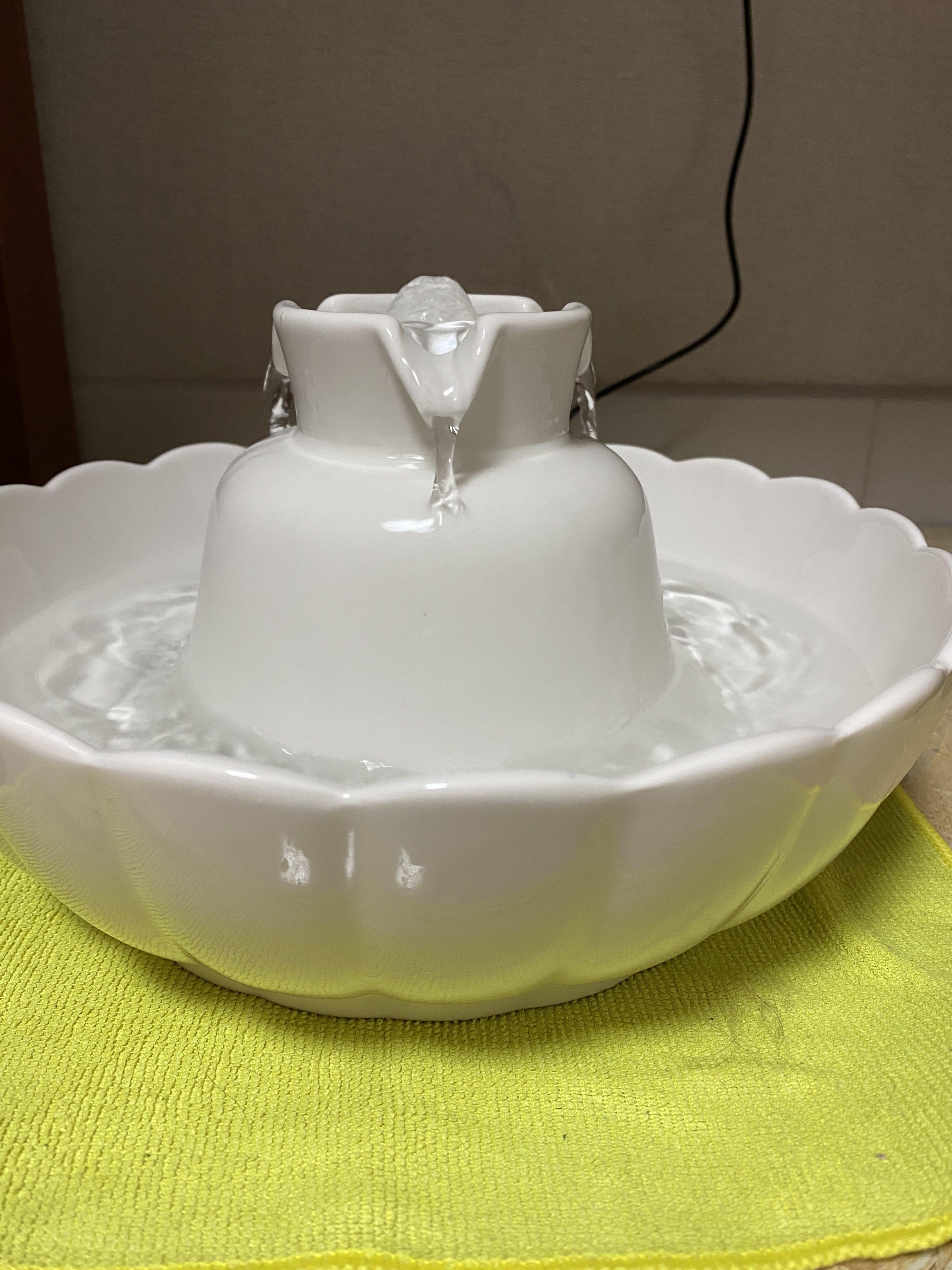 새 정수기는 연꽃 정수기다. 우리 고양이의 음수 취향은 떨어지는 물을 마시는 거라서 맞춰 드리려고 비슷한 거 찾다가 이게 도자기라서 위생적이고 고인 물, 샘솟는 물, 떨어지는 물을 다 선보일 수 있길래 샀다.