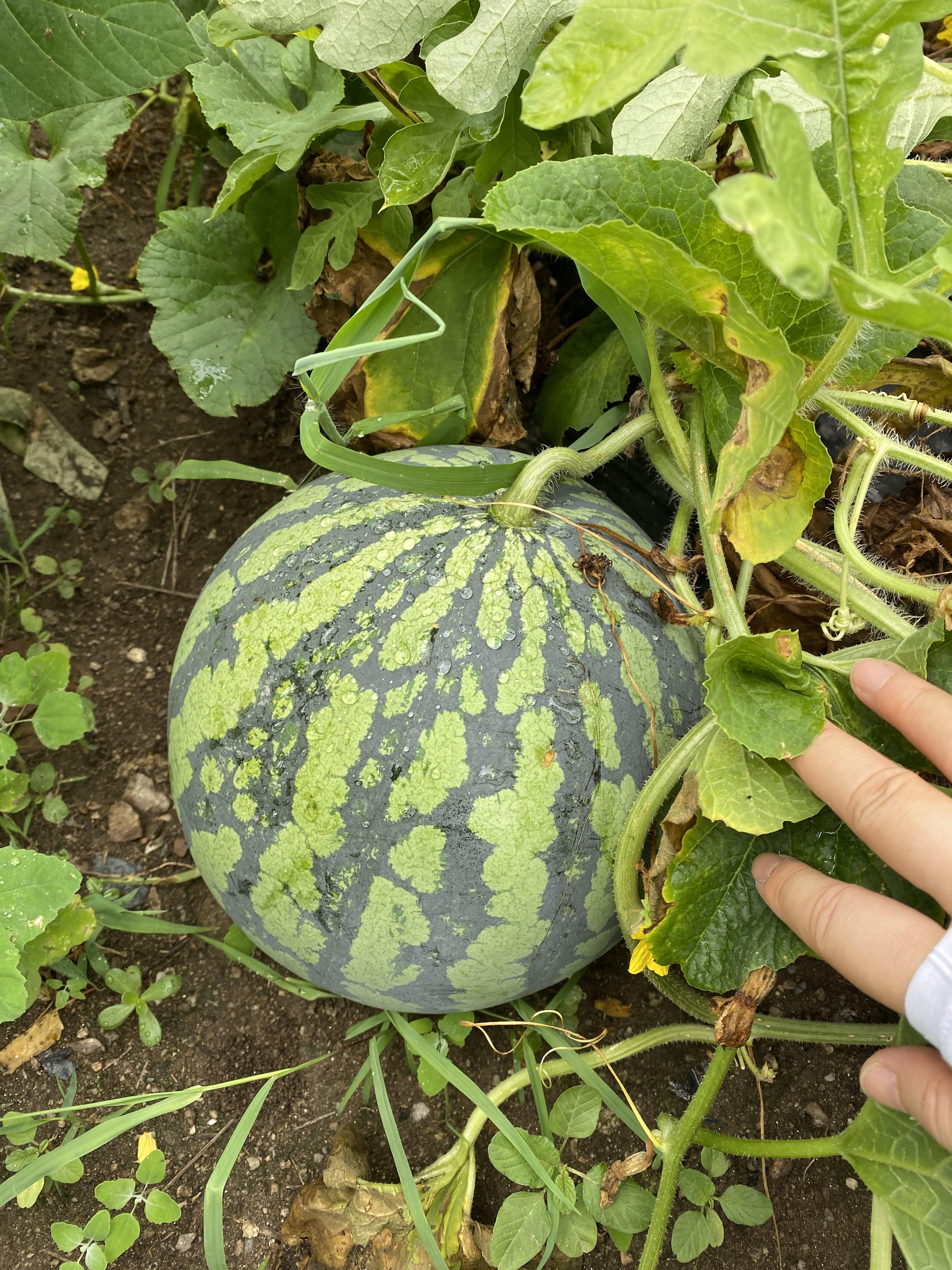 지난봄에 심고 간 수박이 무럭무럭 자랐다. 올해 수박값이 비싼데, 우리 수박들이 풍년이라 아주 기쁘다. 수박들을 삼만 원이라고 부르기로 했다.