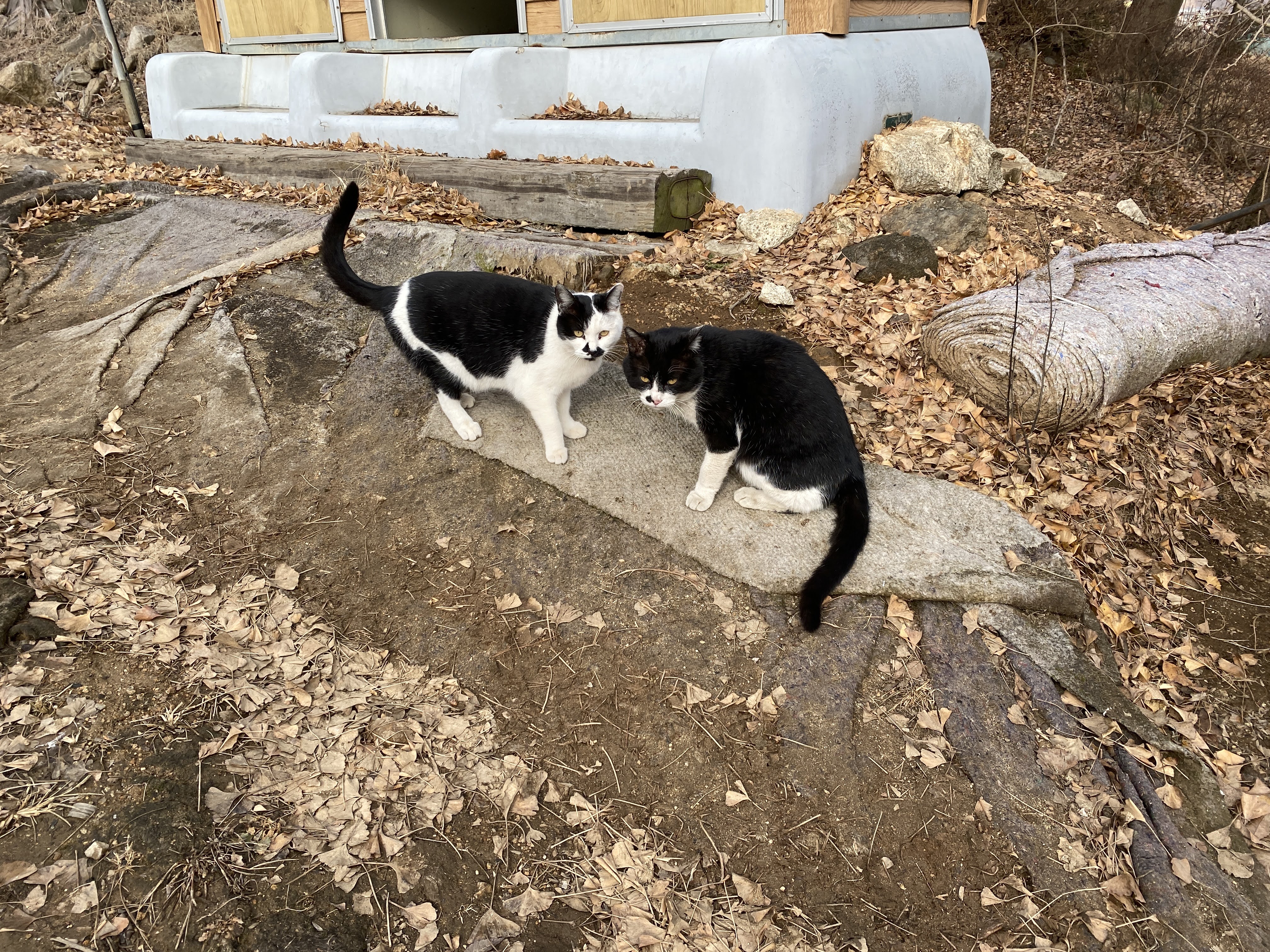아래 사진은 겨울에 찍었던 점박이랑 코순이 사진이다. 얼마나 홀쭉해졌는지!