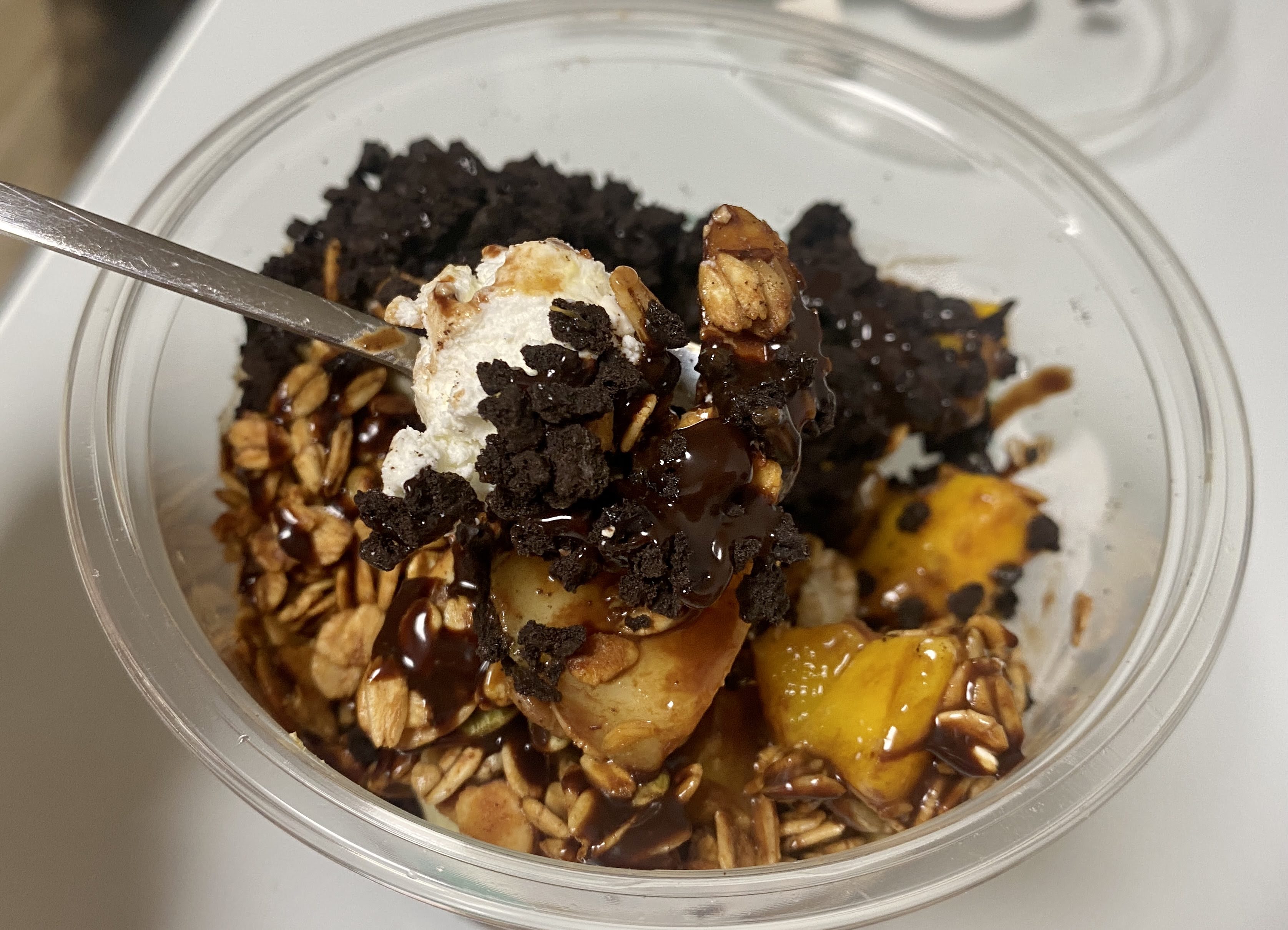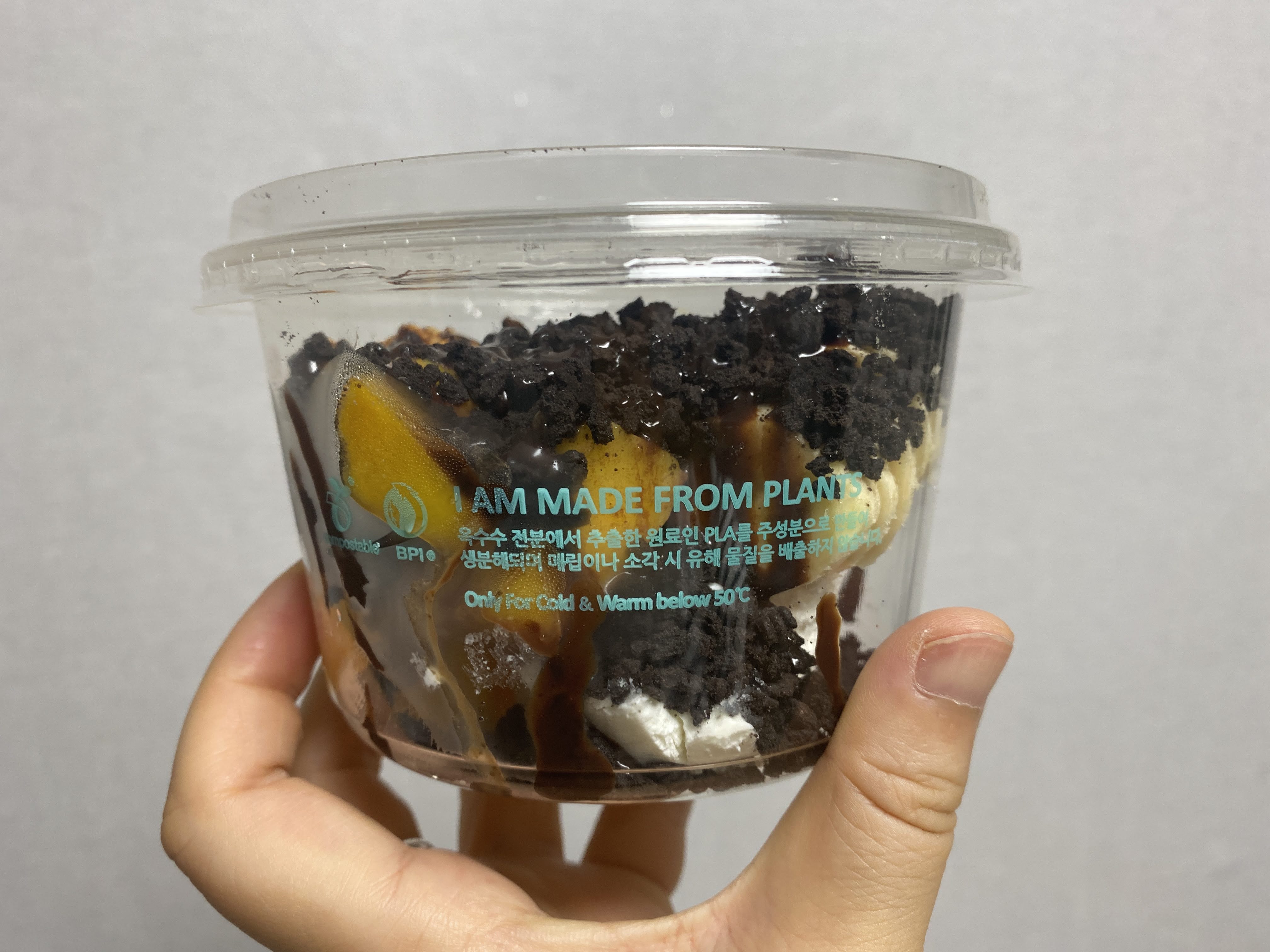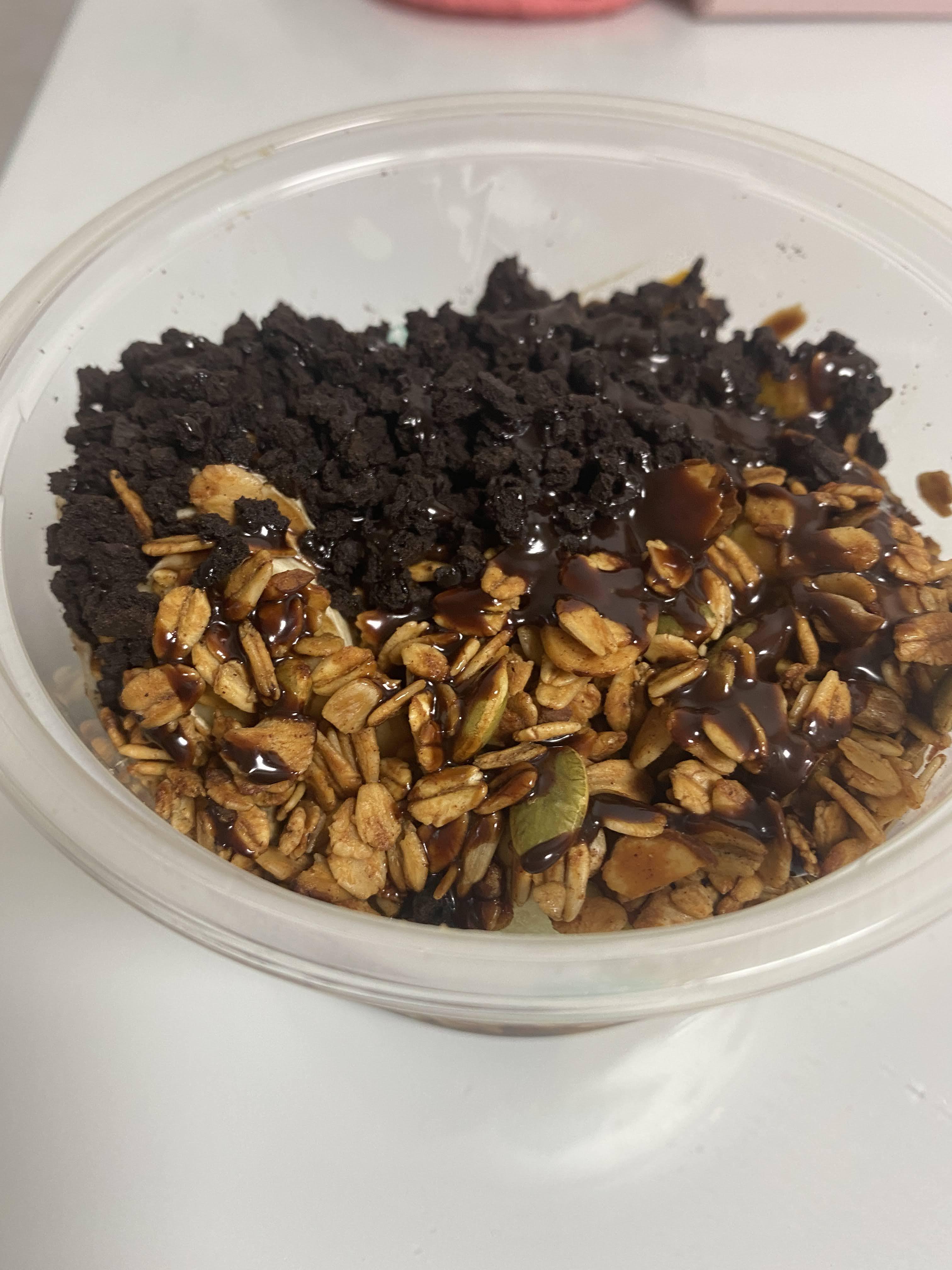 동생 거는 S세트. S세트에는 그래놀라, 바나나, 냉동 애플망고, 오레오, 초코시럽이 들어간다.