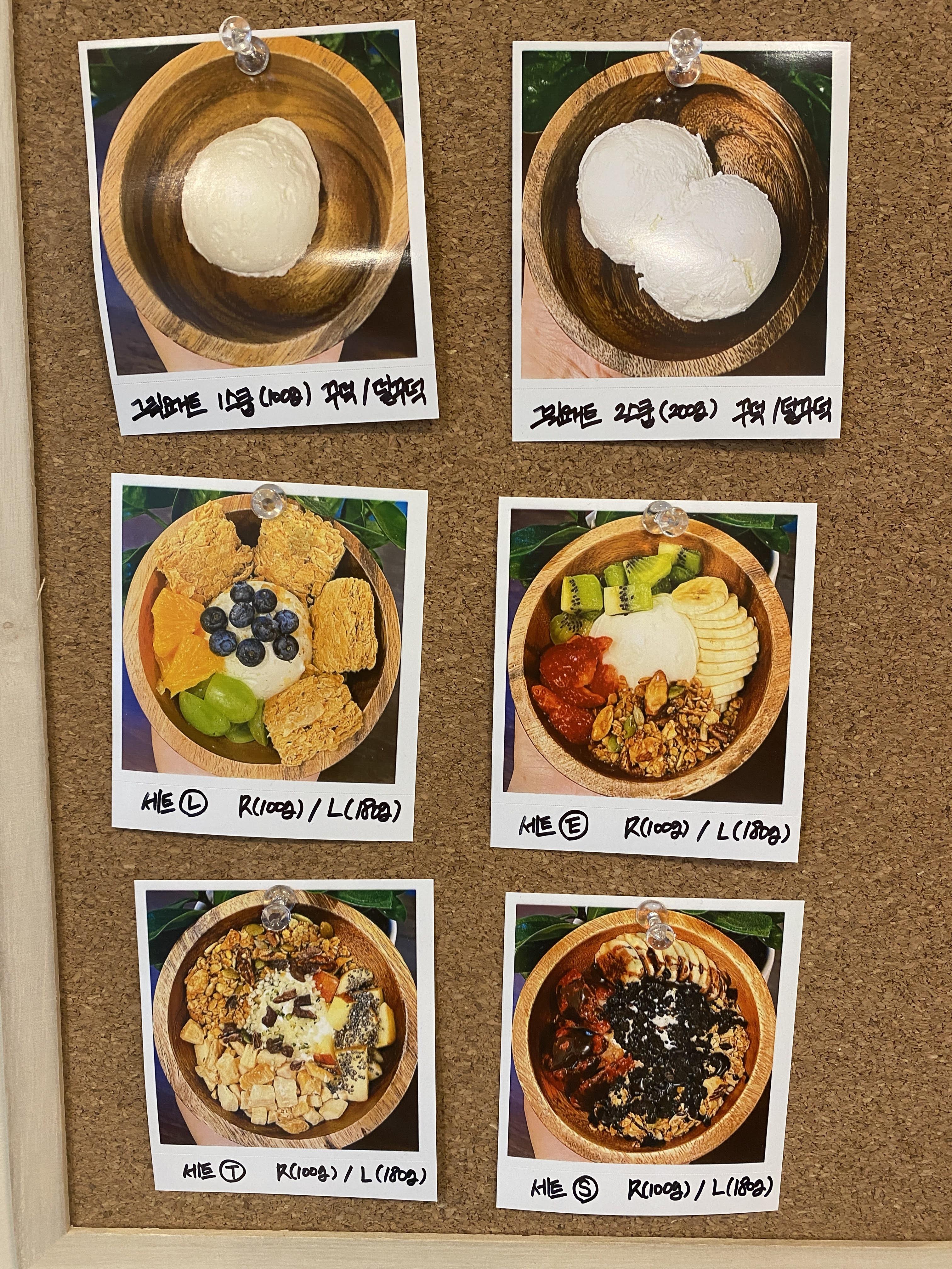토핑 종류가 다양하다. 주문은 키오스크에서 하면 된다. 요거트는 크게 꾸덕과 덜꾸덕 두 종류가 있는데, 나는 이번에 꾸덕으로 주문했다. 토핑 종류가 좀 많아서 뭘 골라야 좋을지 감이 안 오길래 그냥 세트 구성으로 된 걸 주문했다.