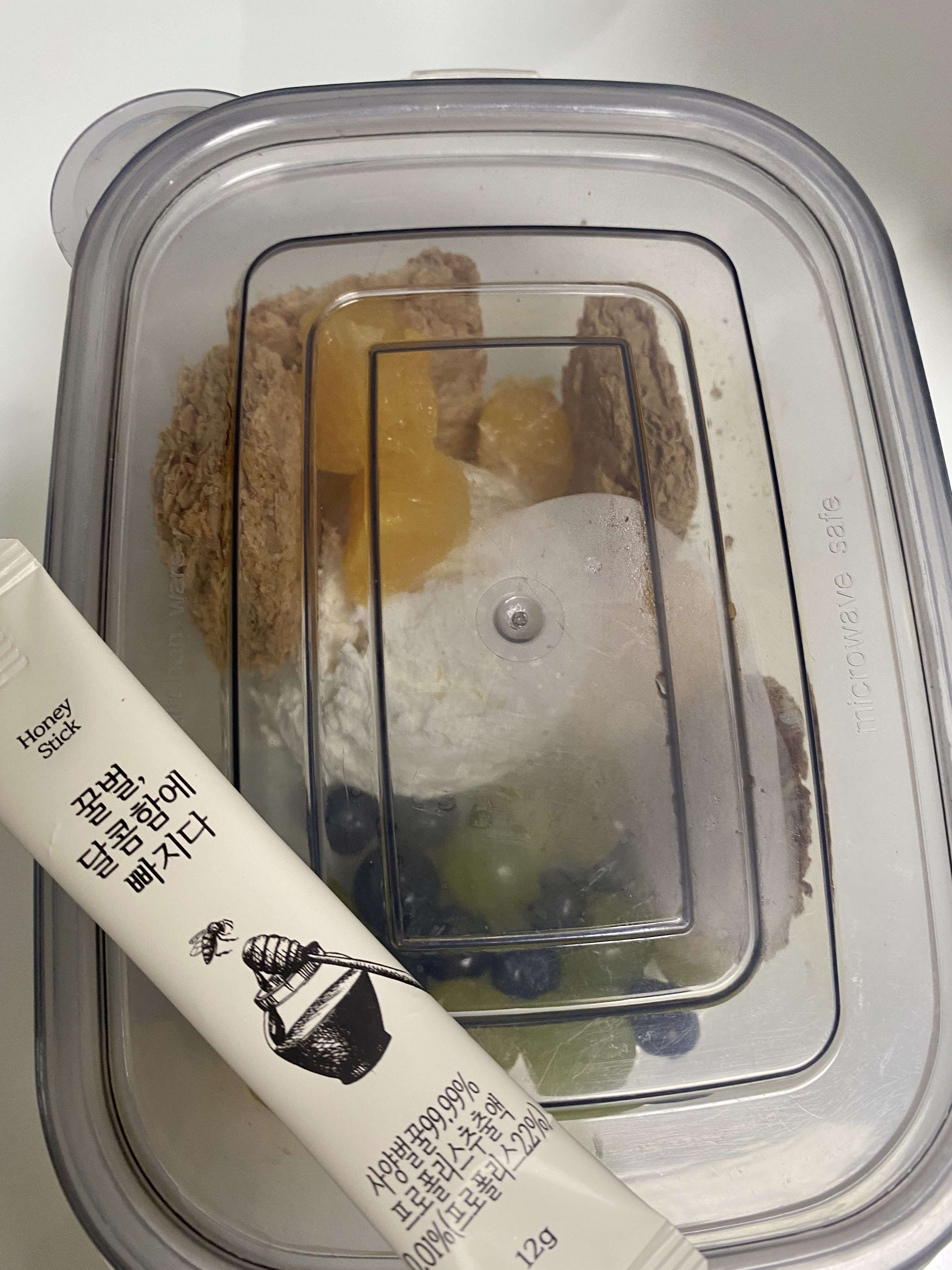 내 거인 L세트를 용기에 받았다. 꿀은 이렇게 개별 포장된 걸 준다.