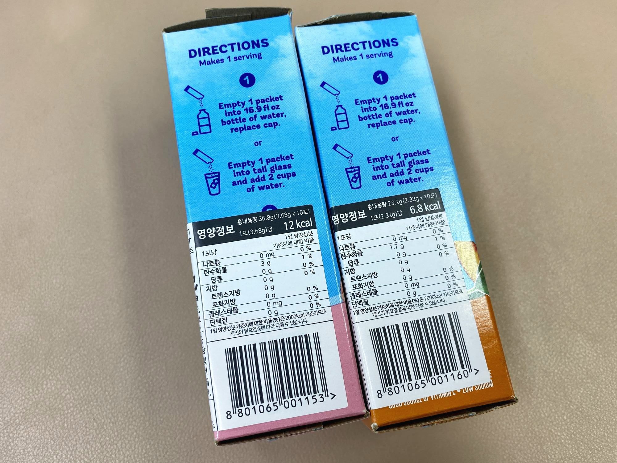 궁금했던 건 체리맛이었는데 체리맛은 품절이라 없었고 피치망고그린티랑 핑크레모네이드를 집어 왔다. 그리고 타서 마실 탄산수도!