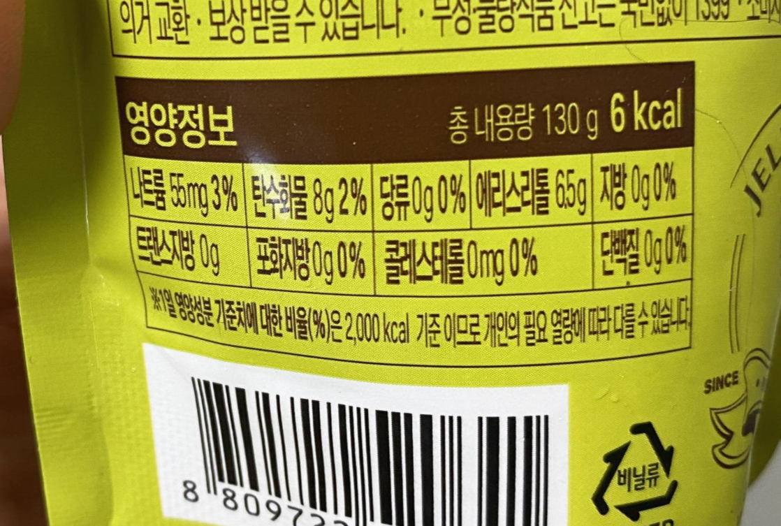 향은 적당히 향긋하고, 단맛은 약간 맹탕 느낌. 사실 이런 곤약 젤리에게서 달달함을 크게 바라면 안 된다. 그게 난 너무 서운하지만...다이어터용 말고 그냥 맛있어서 먹는 사람을 위해 마음껏 달고 향도 강한 애들이 나오면 좋겠다.