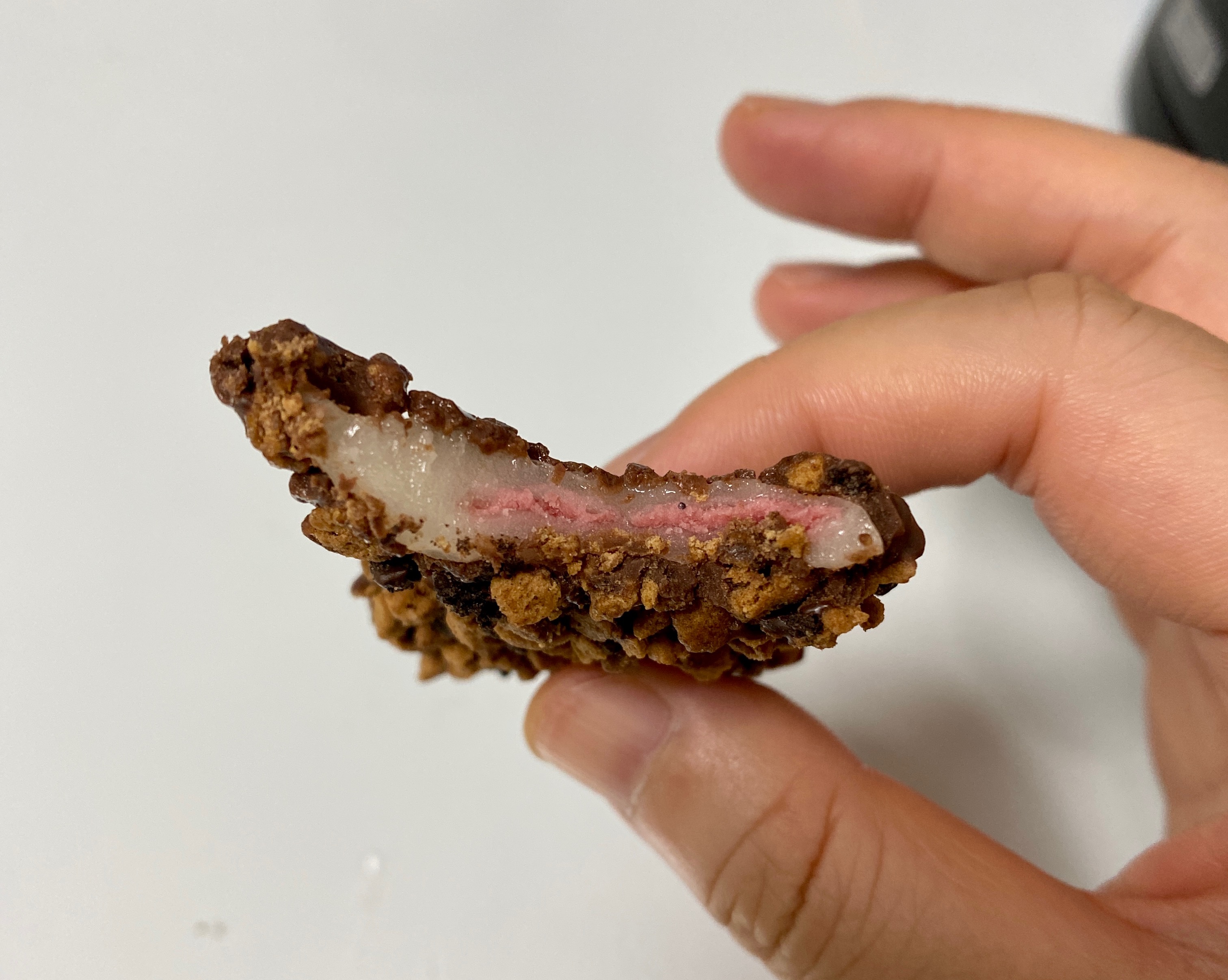크런치 속에 찰떡, 그 안에 빨간 딸기맛 크림이 들었다.