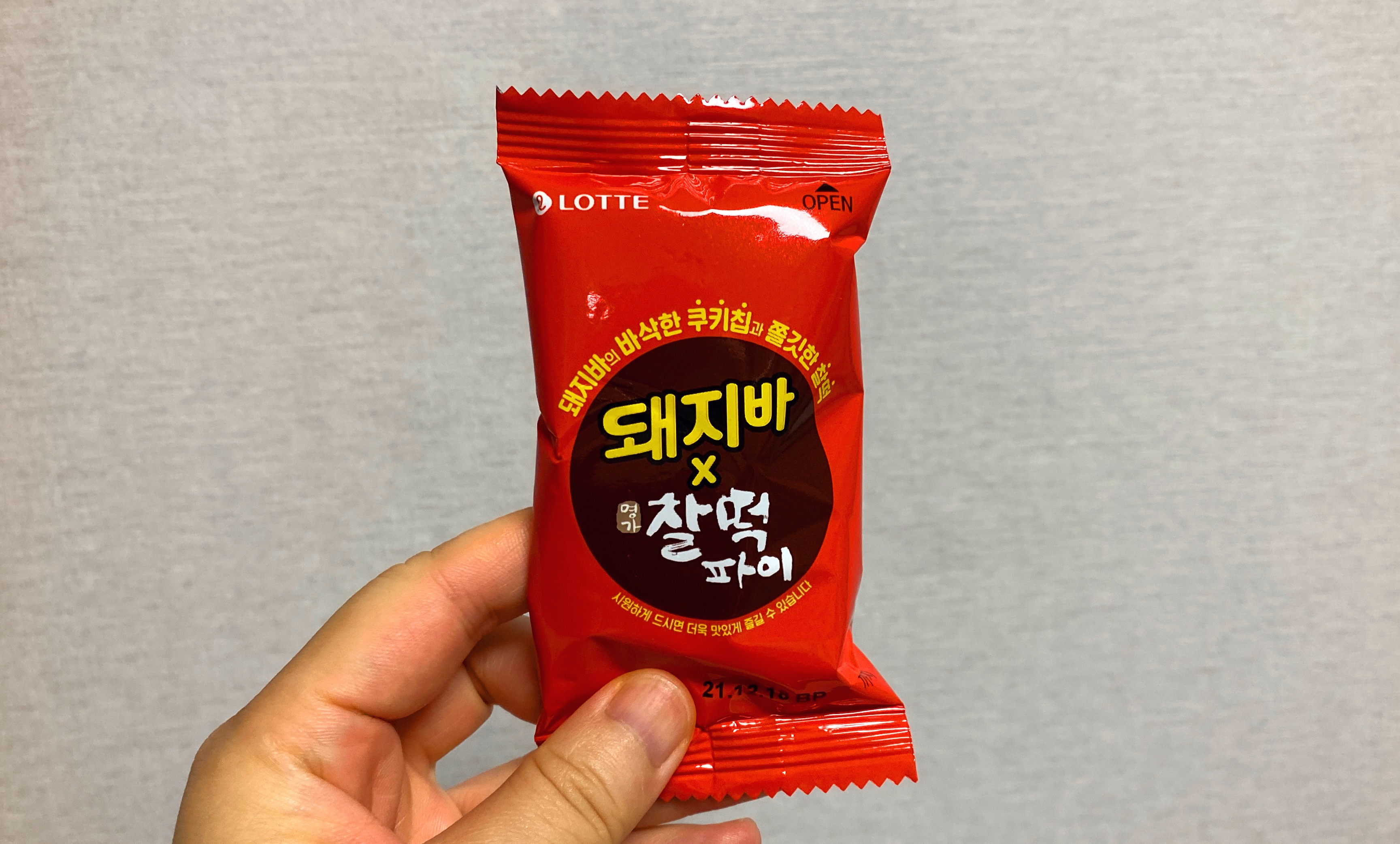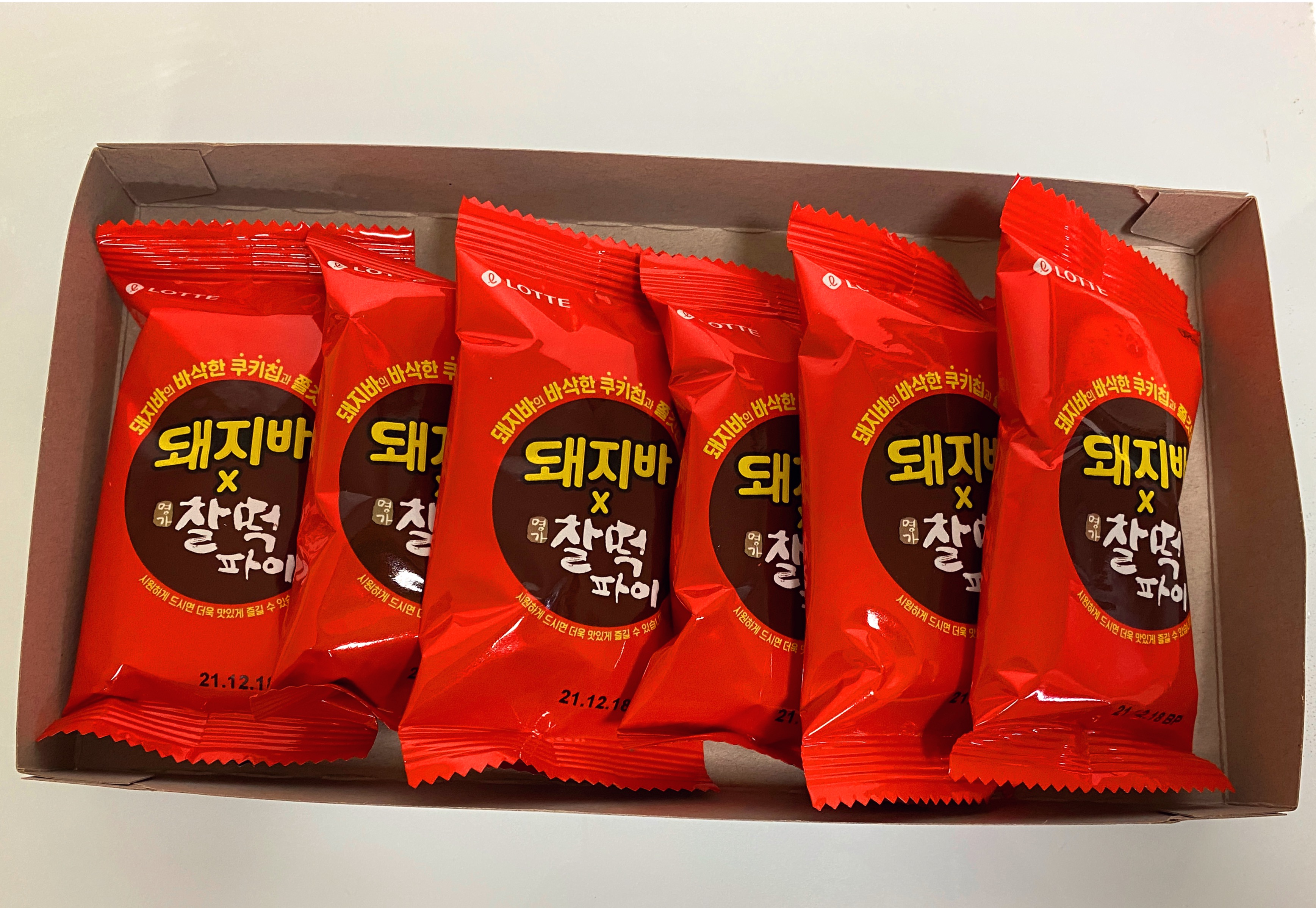 일단 찰떡파이 상자는 돼지바를 떠올리게 하는 빨간색 상자다. 내가 보기에는 너무 빨개서 쪼끔 무서워 보이기까지 한다.