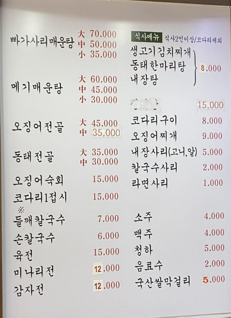 여기 매운탕이 맛있다고 유명한데, 물고기가 들어간 탕은 국물 먹다가 가시 나올까 봐 더 손이 안 간다.