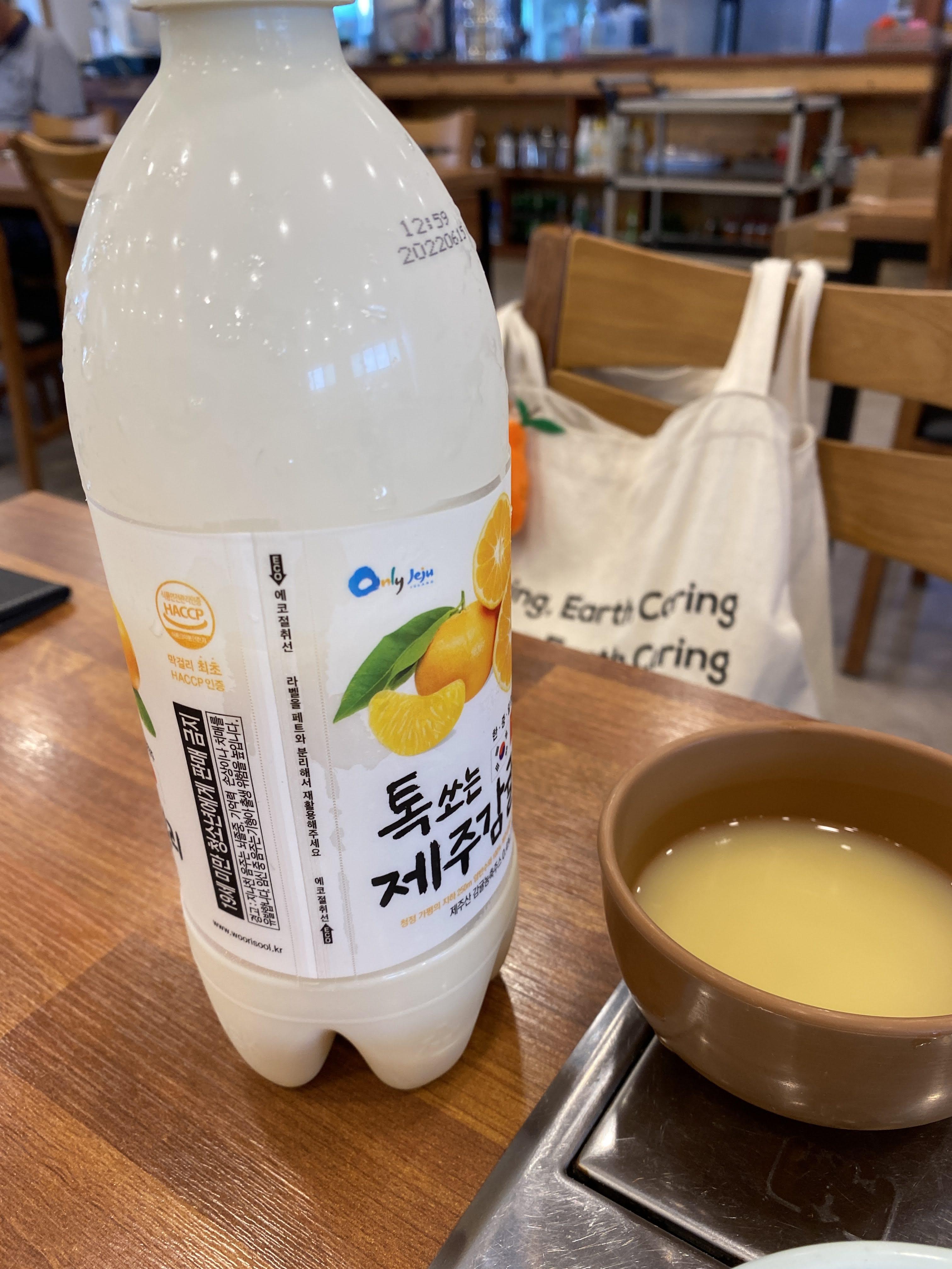 당황스러울 정도로 잘 먹고 나왔다. 감귤 막걸리 시켜서 같이 먹었는데,
