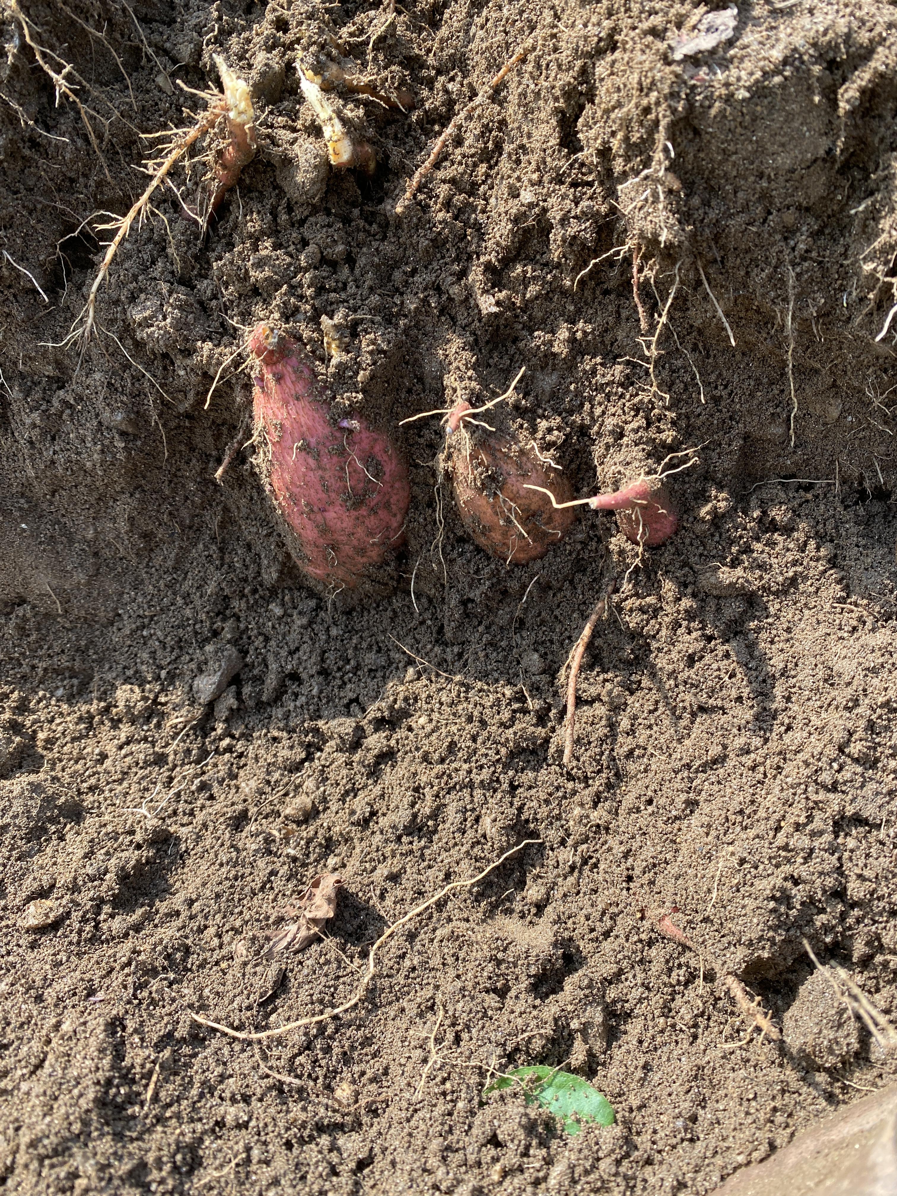 잘 수확한 고구마들은 저렇게 잠시 햇빛 아래 둔다. 흙이 마르면서 수분도 좀 날리고, 처음으로 해를 보는 고구마들에게 일광욕도 좀 시켜 줄 겸.