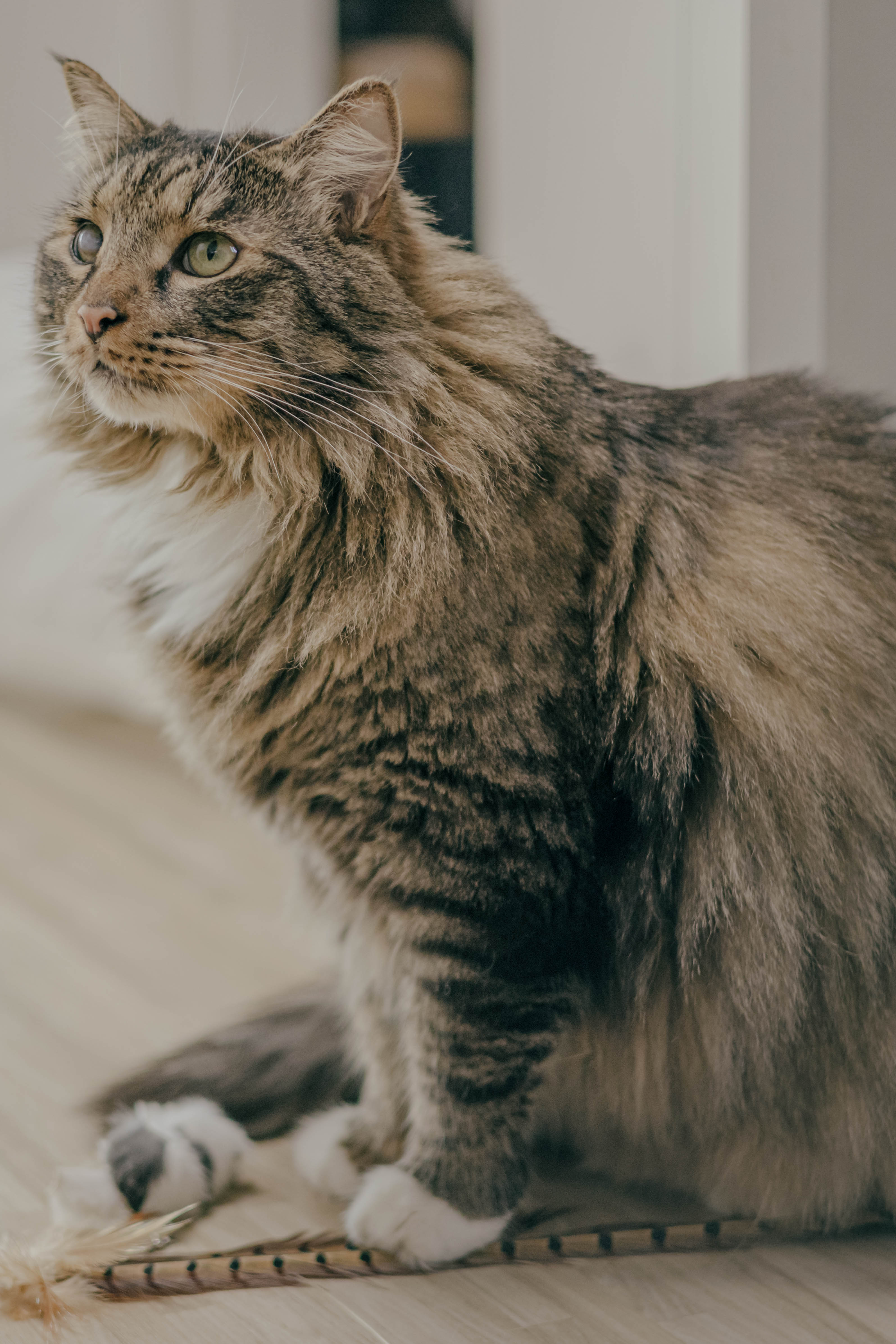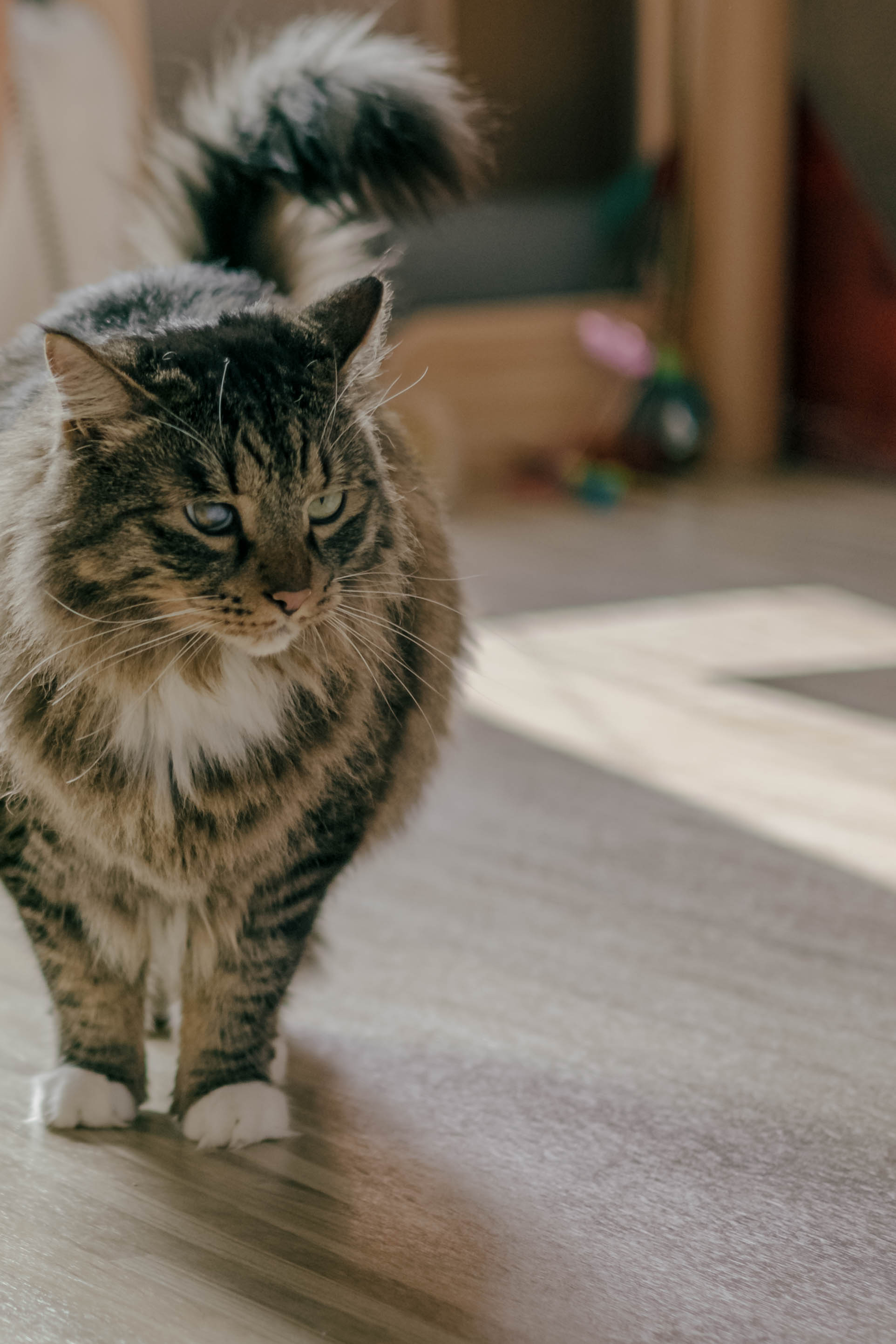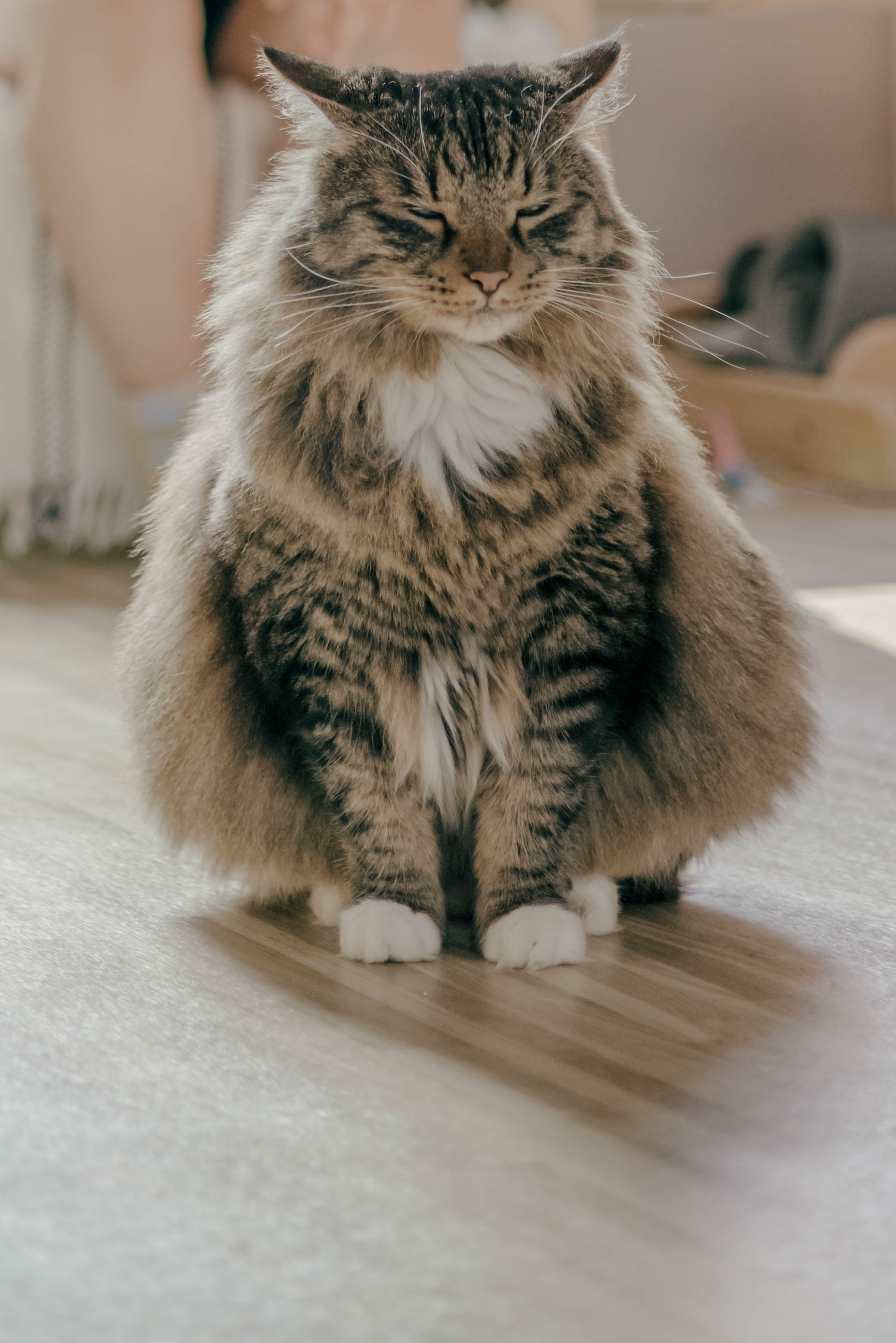 우리 고양이 같은 경우에는 손님이 와도 숨는 편은 아니고 나와서 킁킁거리고 관심을 주는 편이다.