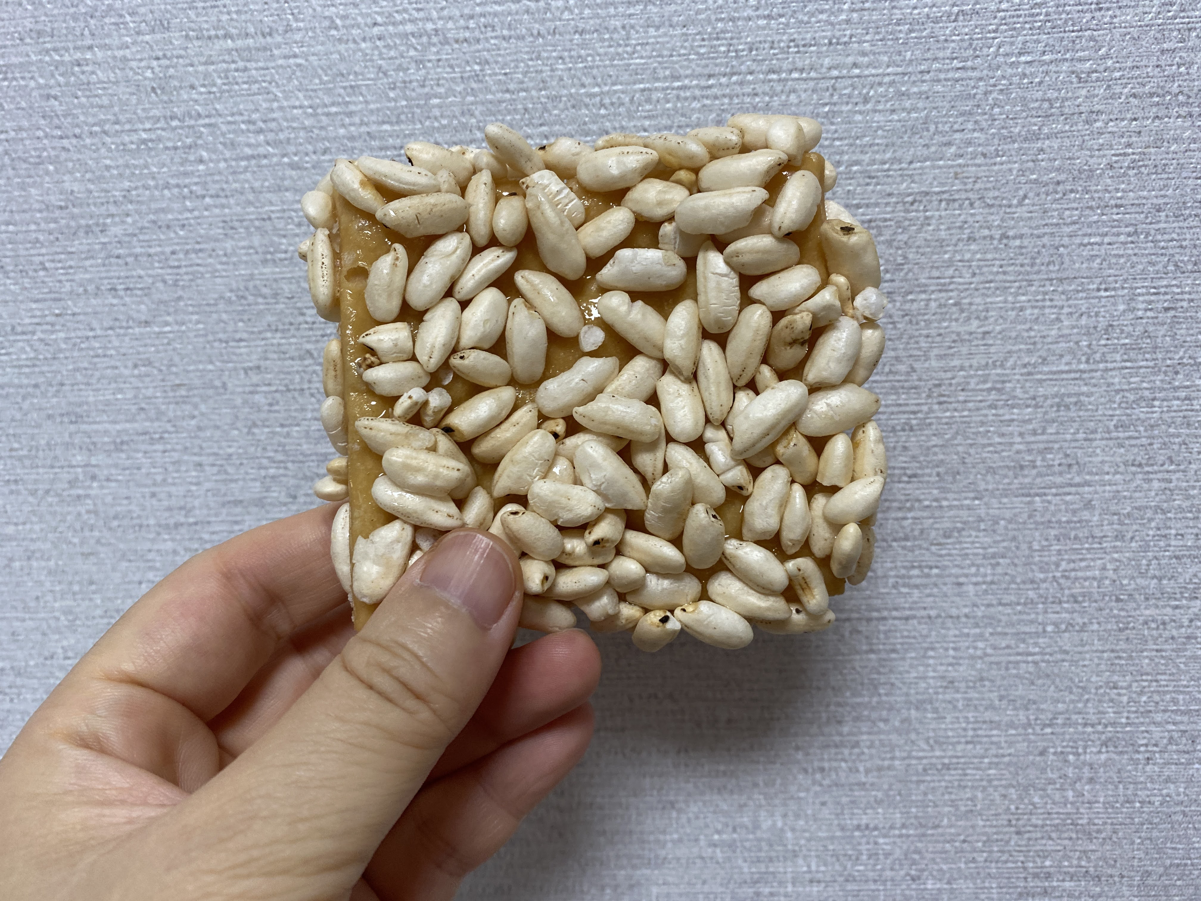 과즐의 포인트는 튀밥이 얼마나 바삭한지, 안에 쫀득한 과자 부분이 이에 들러붙지 않으면서 얼마나 맛이 좋은지다!