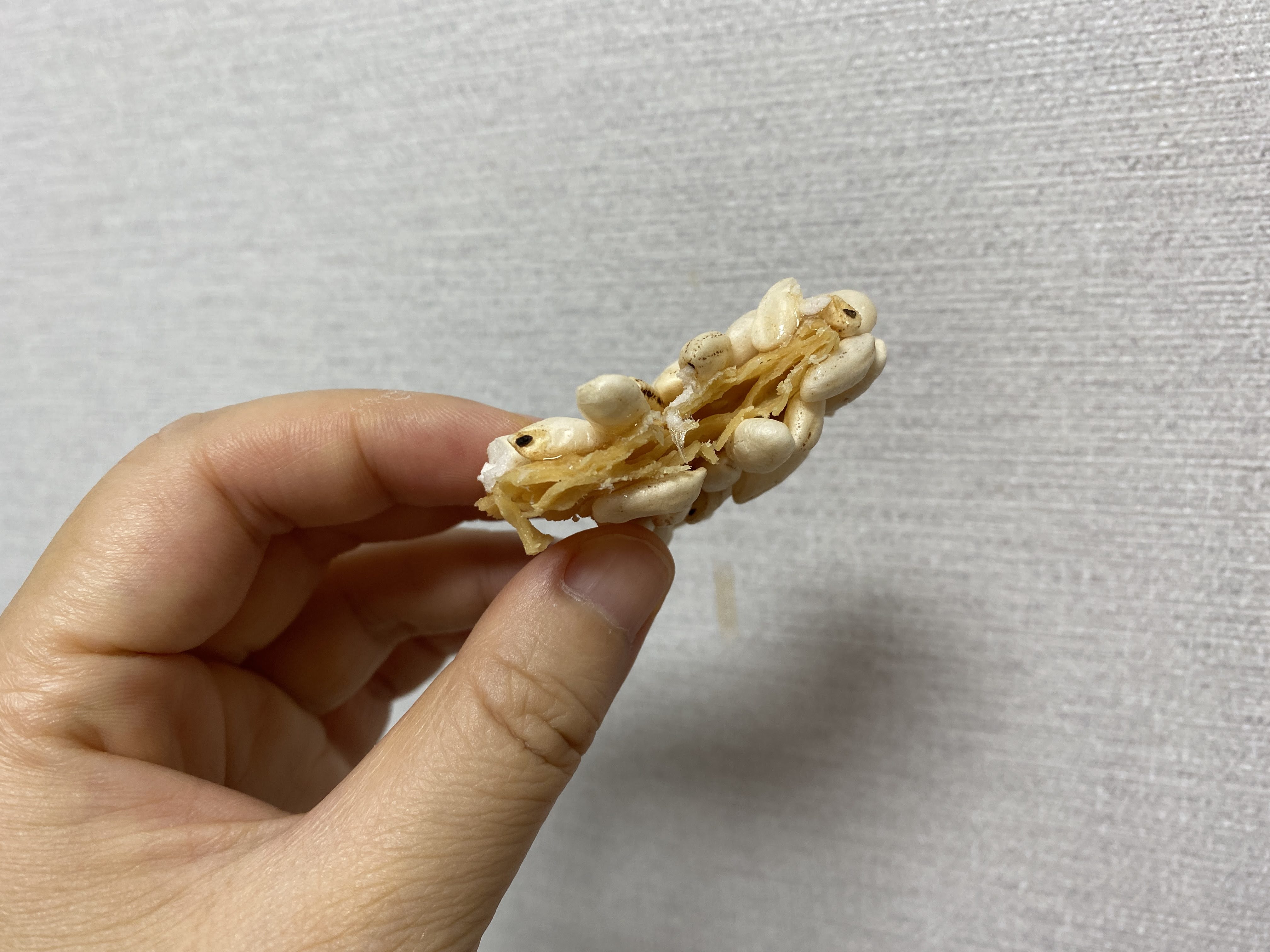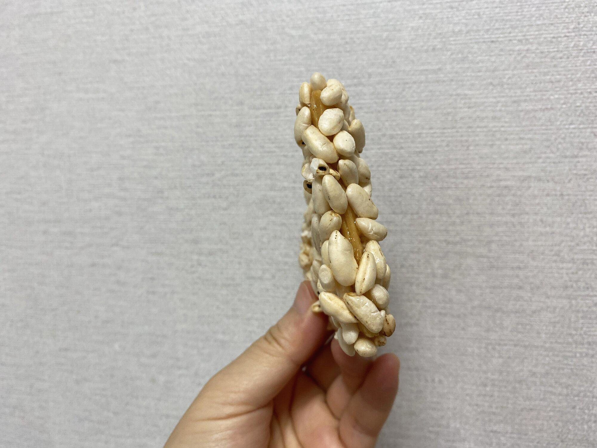 봉지에서 꺼내면 이렇게 튀밥이 다닥다닥 붙은 과즐이 나온다.