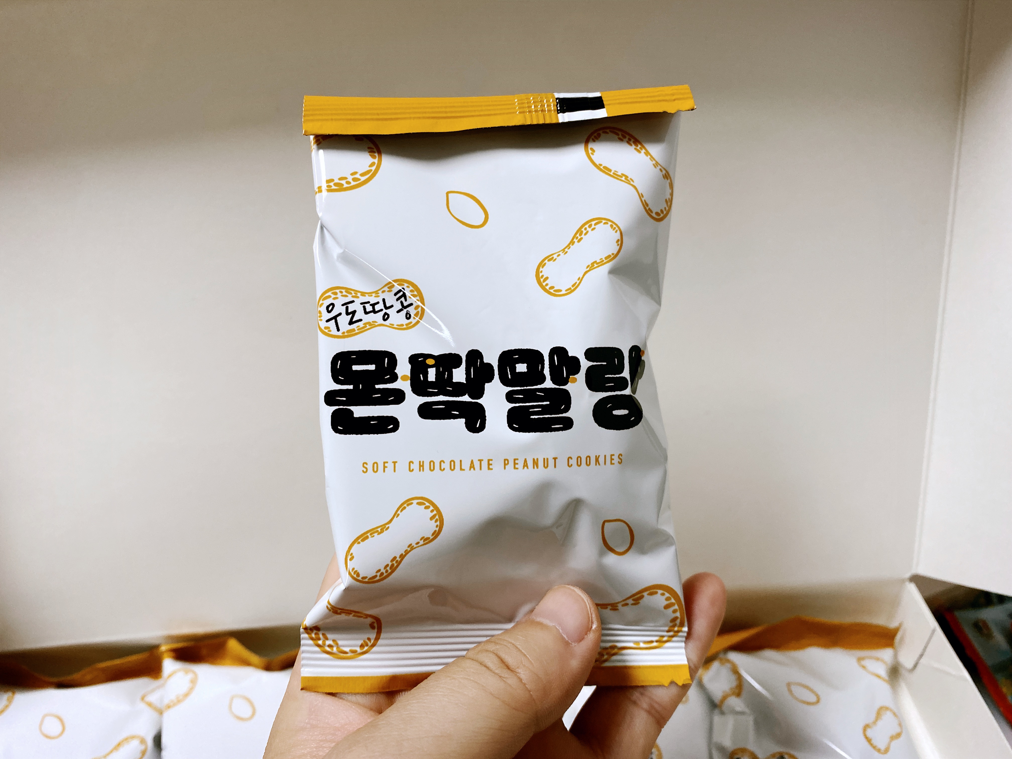 그 안에는 땅콩이 흩뿌려진 초코덩어리가 들어 있다.