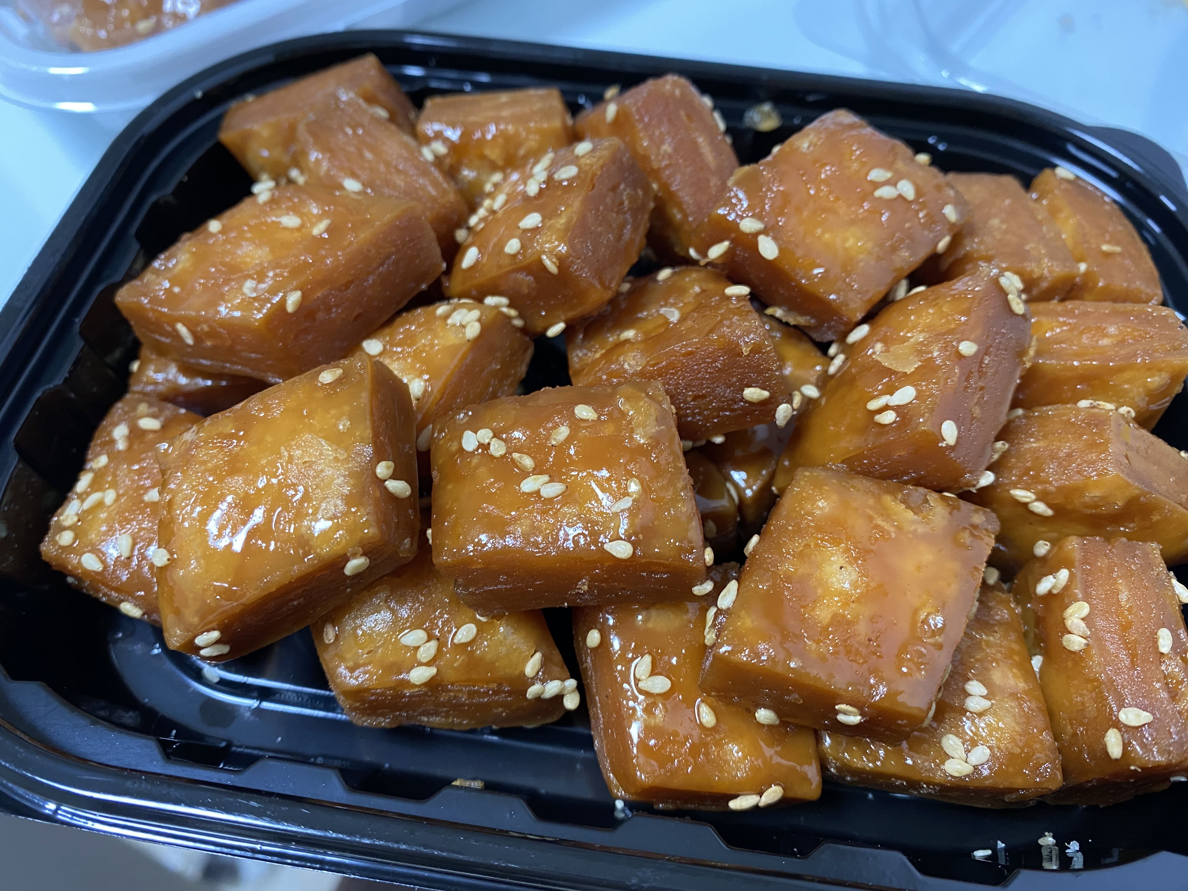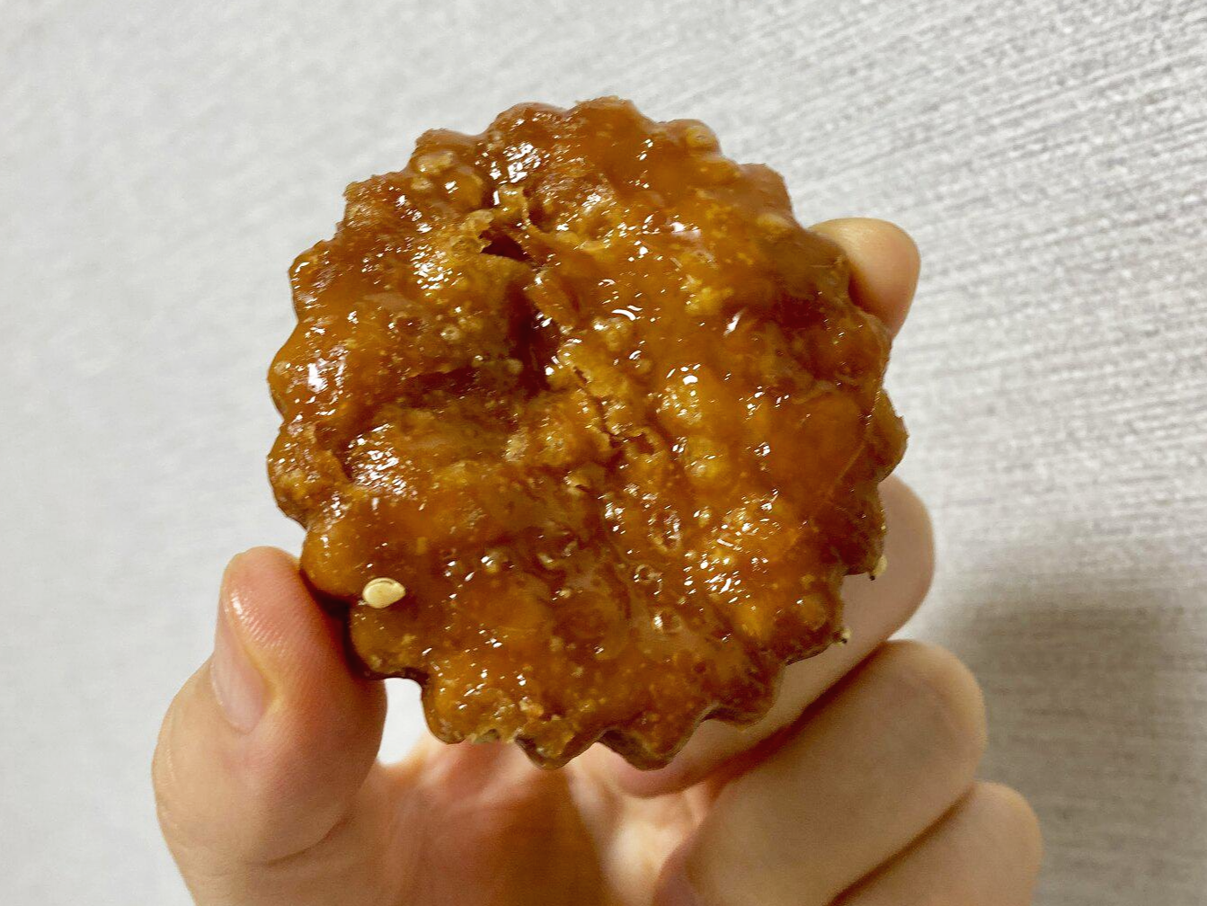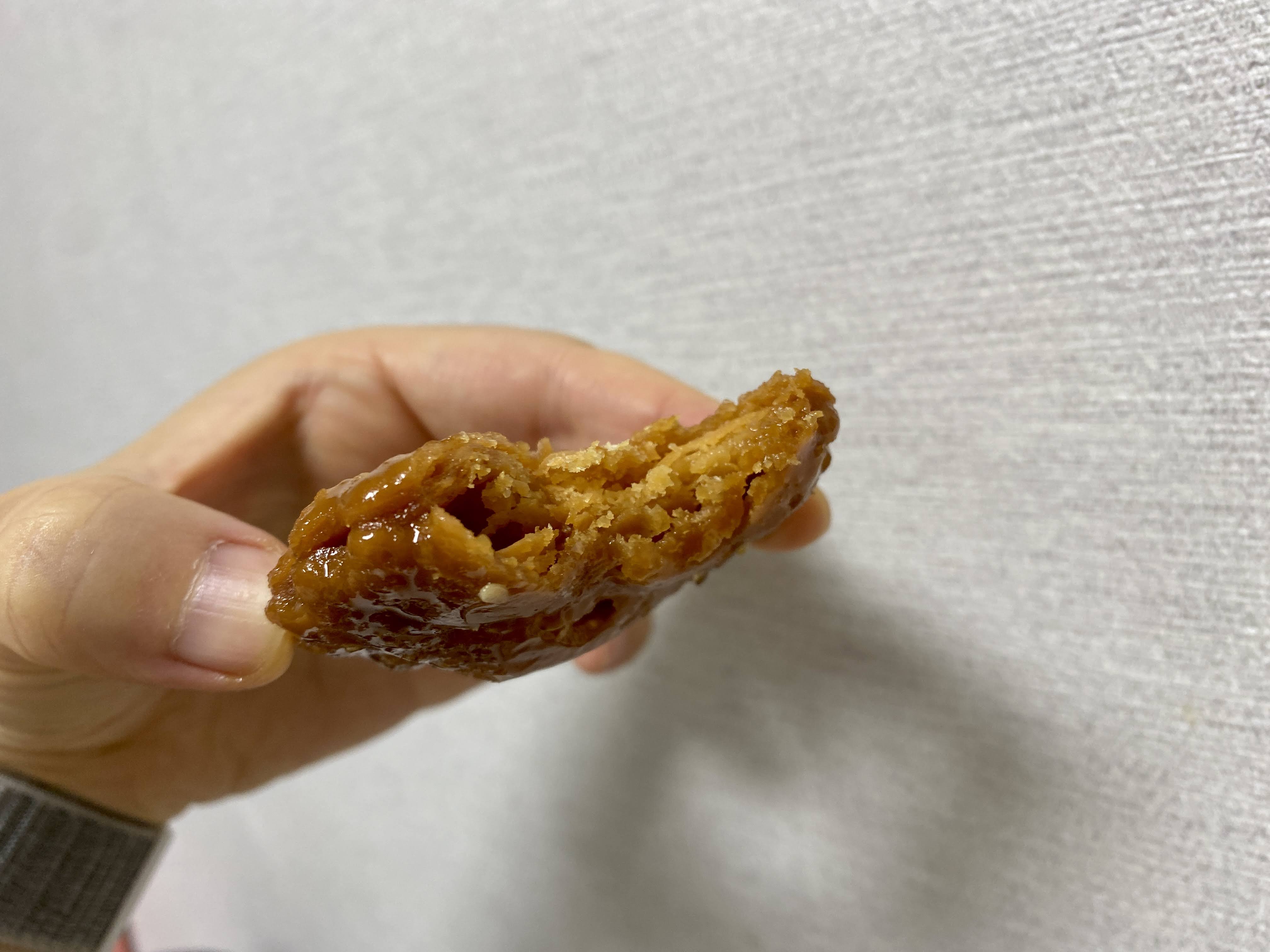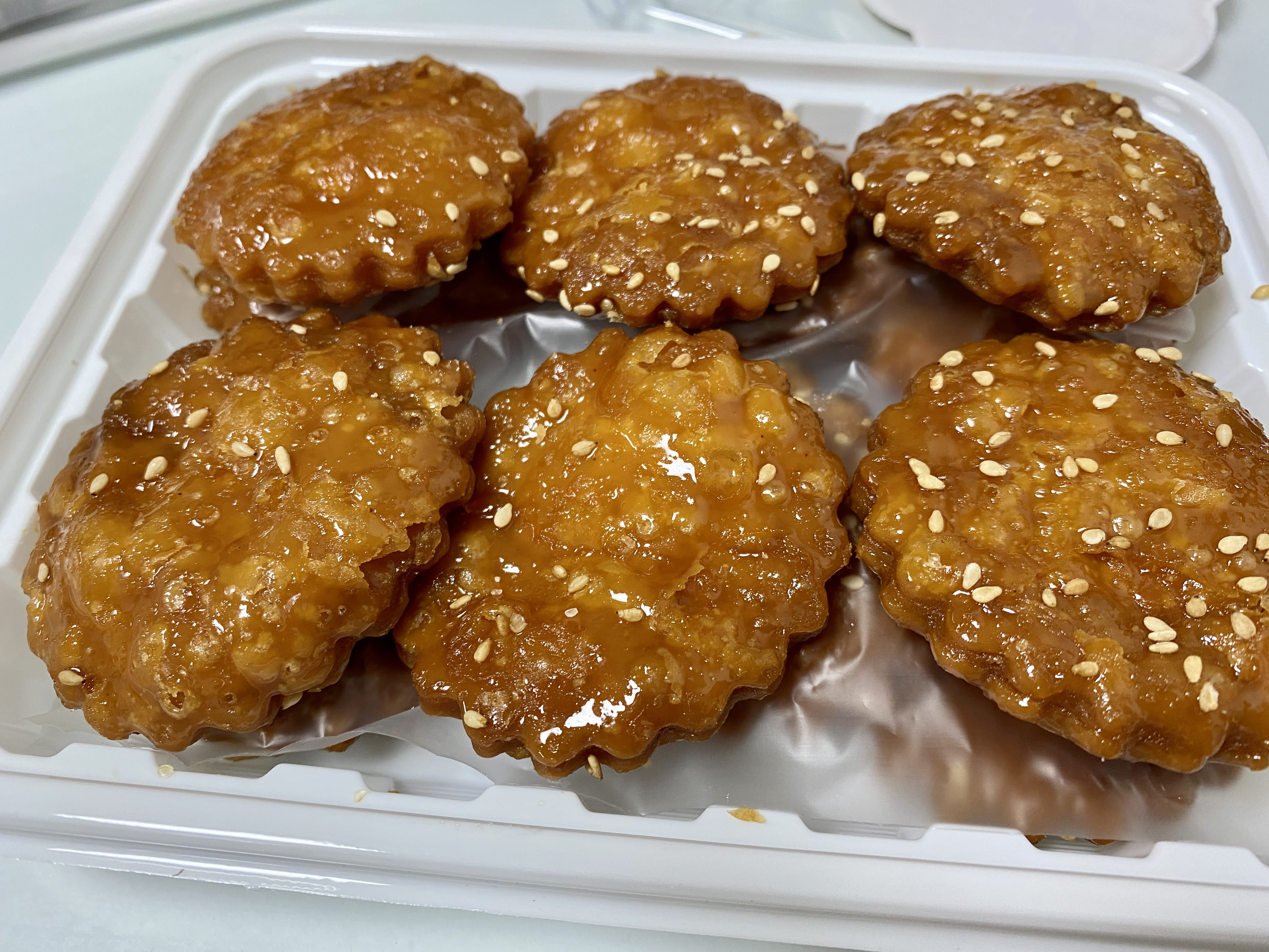 제법 도톰한 두께고, 깨물면 겉은 물엿을 머금어서 촉촉 속은 층층이 제법 바삭하다.
