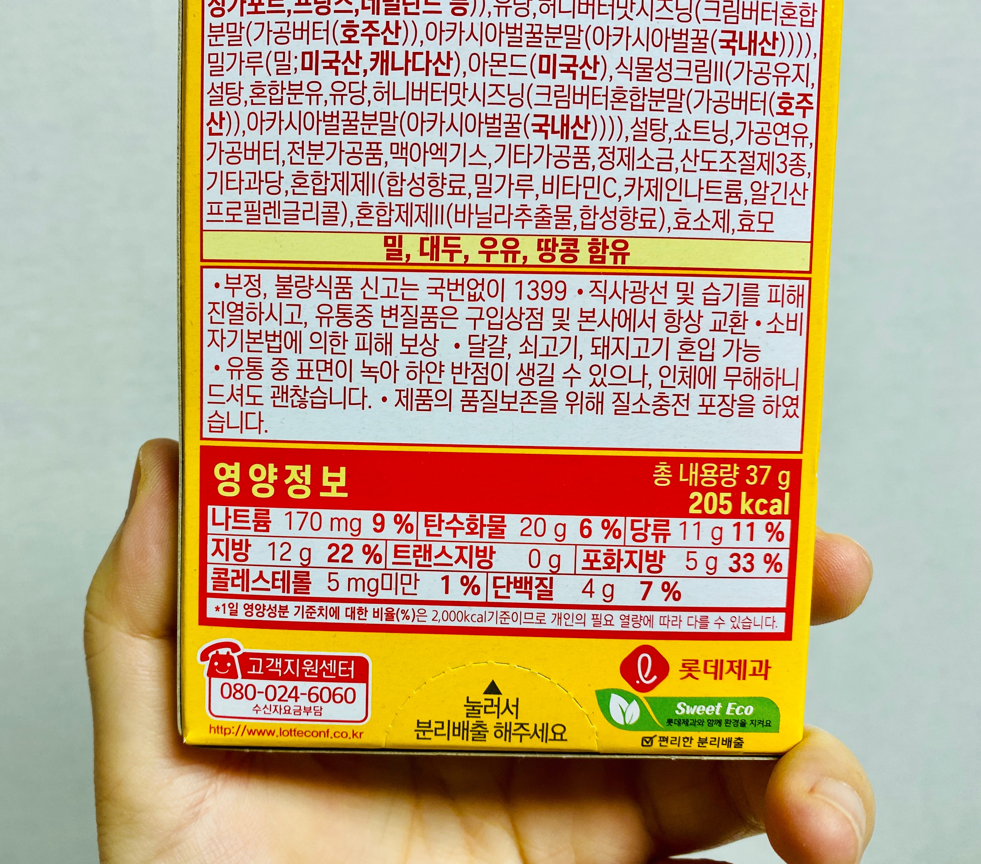 허니버터아몬드라서 꿀색으로 칠한 상자.