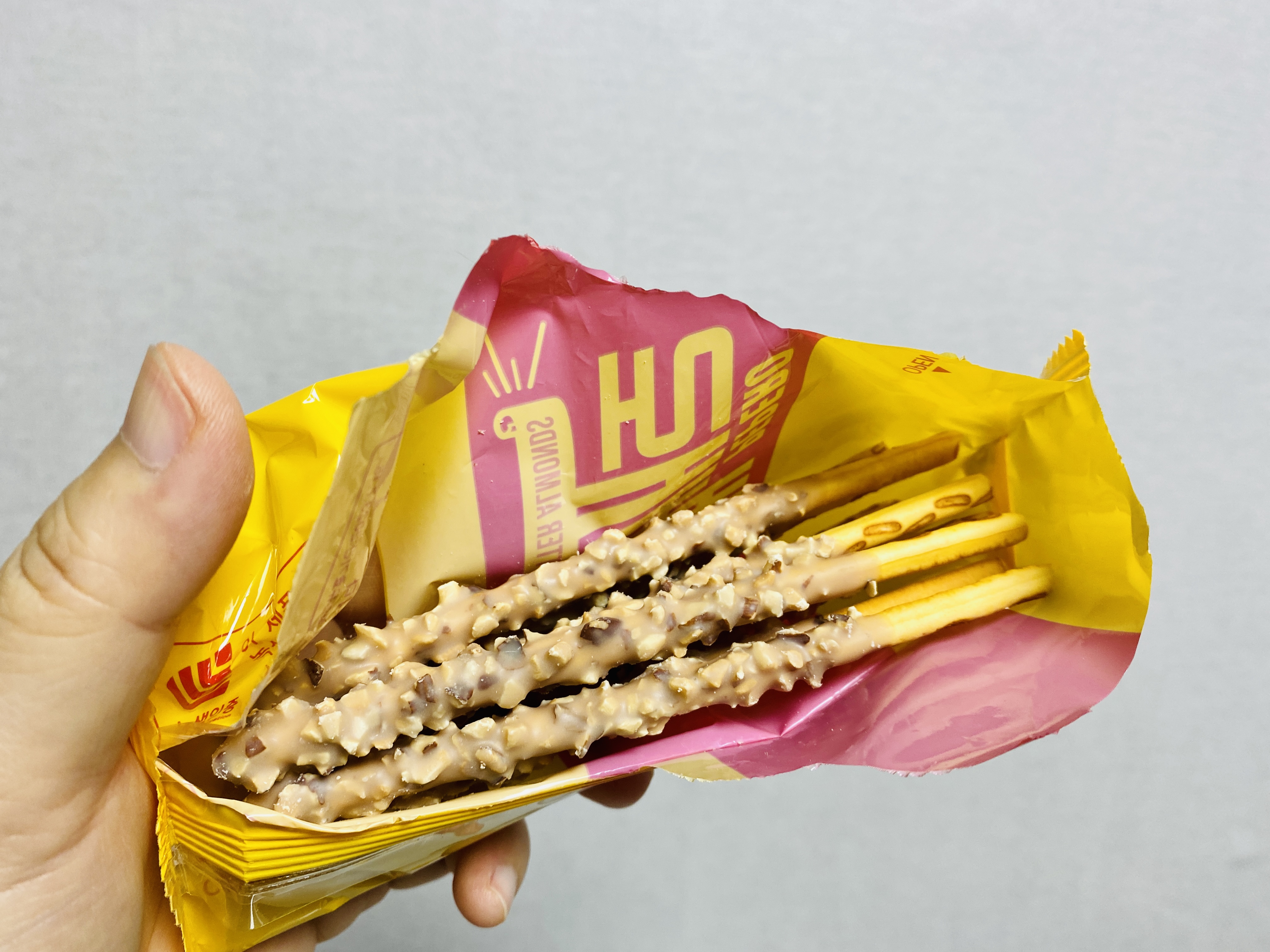허니버터라 그런지 약간 오묘한 색감의 빼빼로가 보인다.