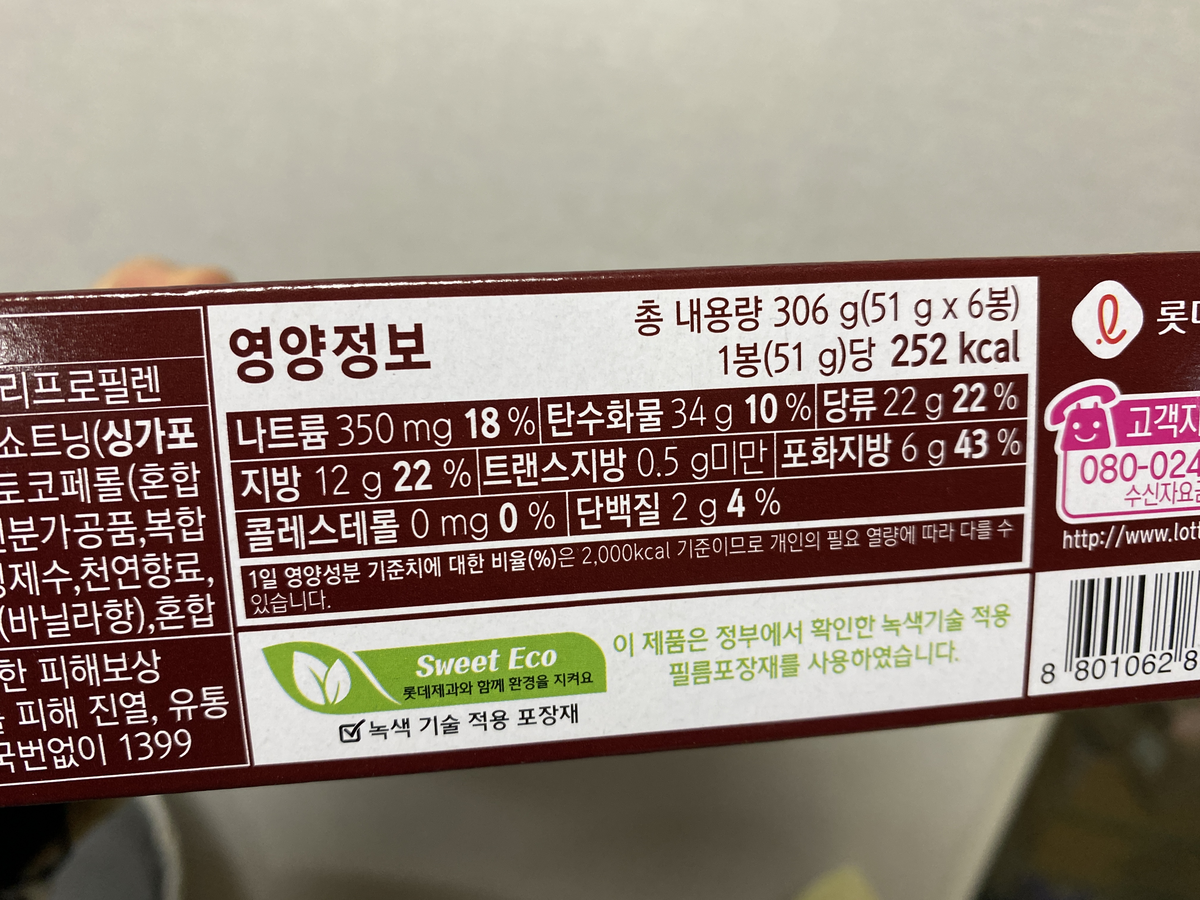 과자니까 영양 정보에 큰 기대를 가지지 않지만, 볼 때마다 몸에 쪼끔 미안한 기분이 들긴 한다.