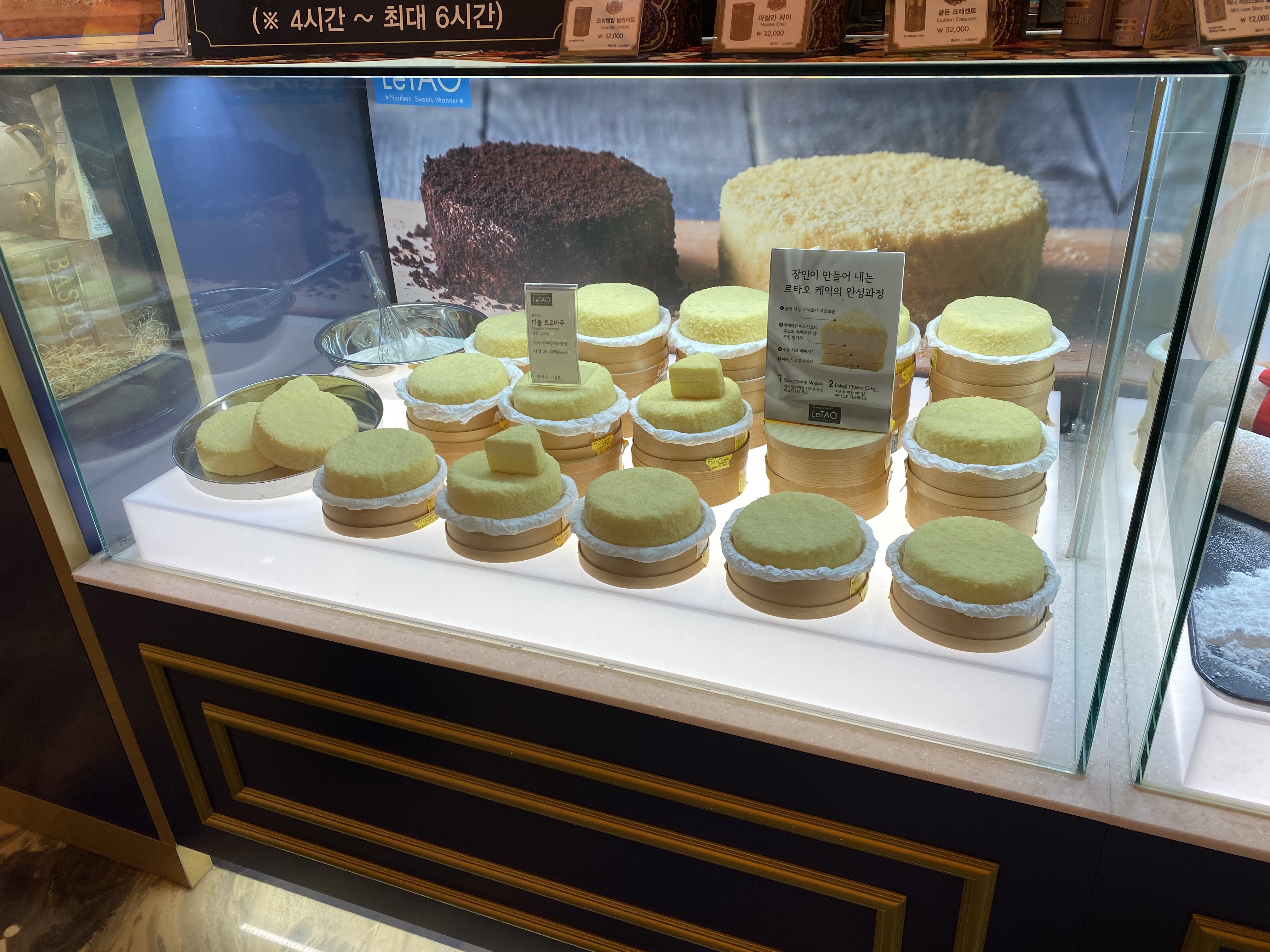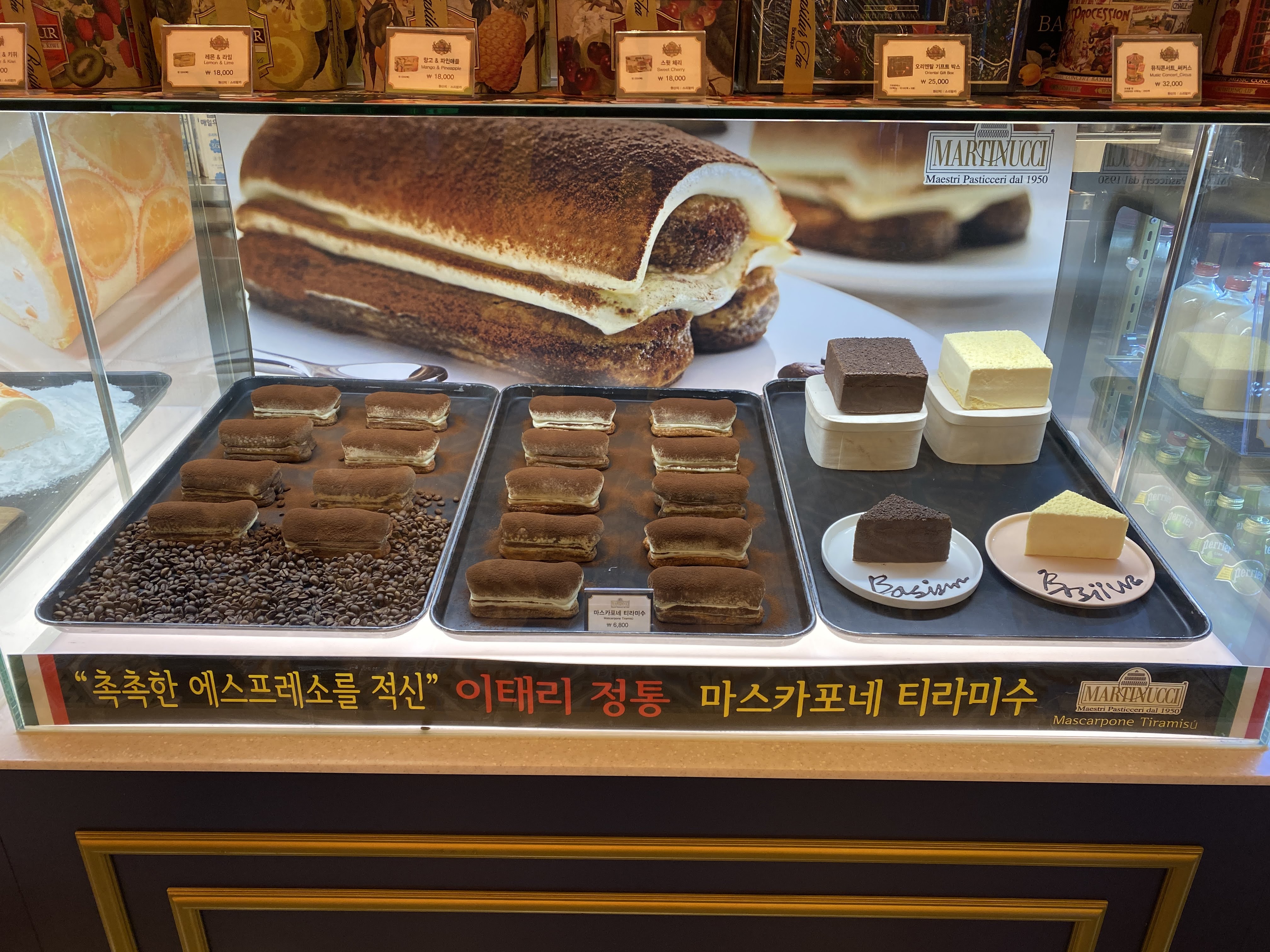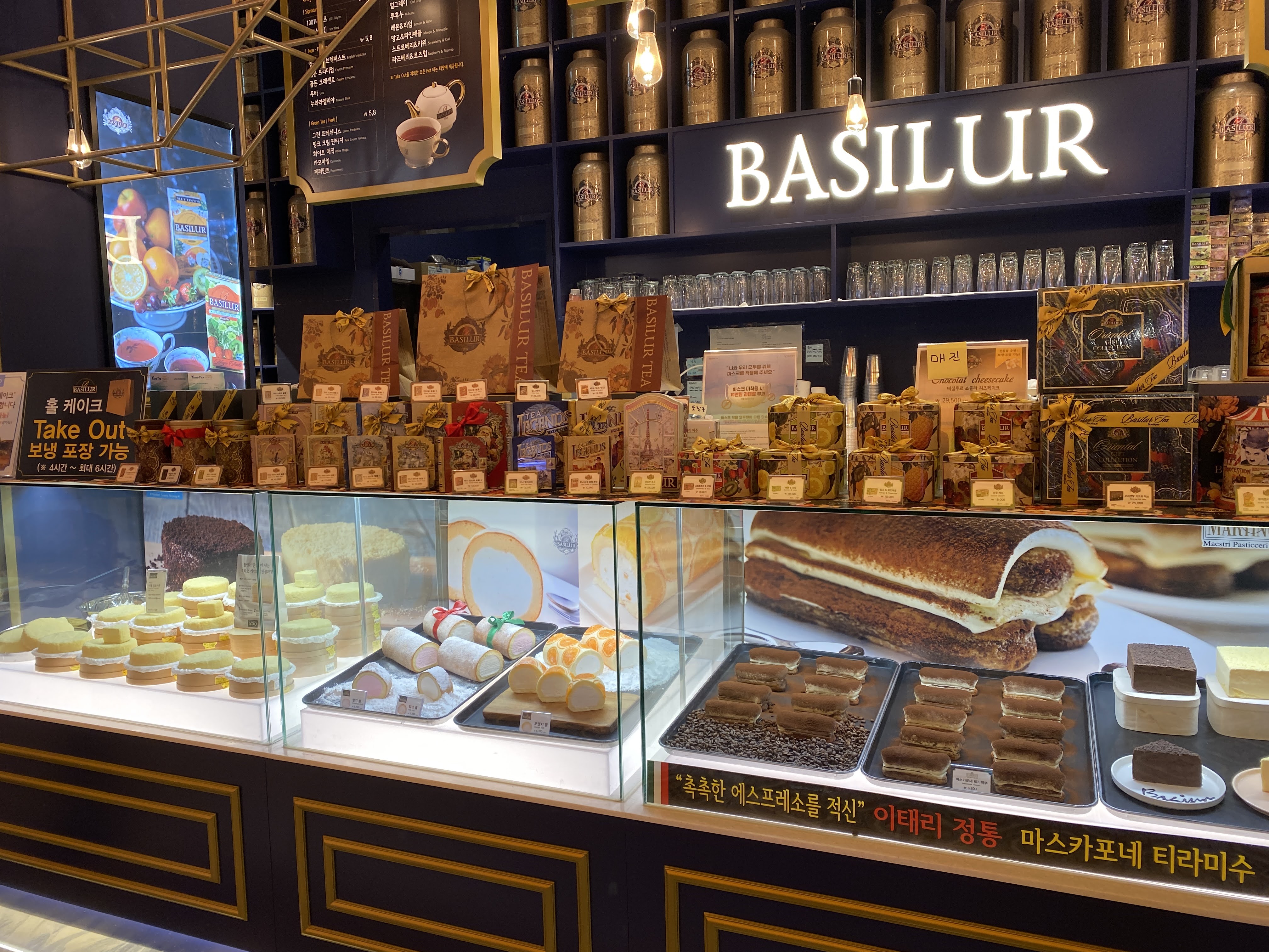 일단 치즈케이크, 티라미수, 베질루르의 티세트 등 다양한 것들이 진열되어 있다.